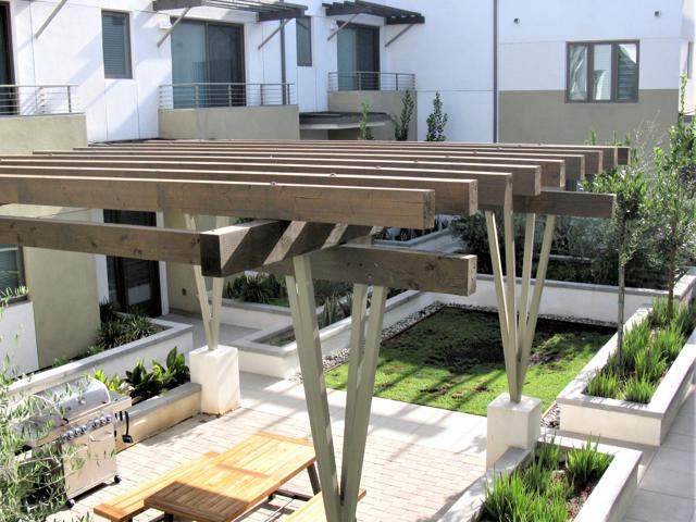 Unit 204 is a tranquil and quiet 2-bedroom, 2-bath south-facing flat in the rear of the complex among twenty-one hip, handsome well-appointed new townhouses and flats located within walking distance of the Del Mar Gold Line station and all Pasadena's shopping, civic, commercial and recreational venues. Amenities include a two-car individual garage, a center garden court with mature landscaping, water feature and BBQ area. It has an open floor plan with a huge patio over looking tall trees and the Victorian building next door. Laminate wood floors in the living room and the dinning area, and concrete tile flooring in the baths. Quartz counter-tops and modern polished white cabinetry. Stainless steel Frigidaire appliances and in-unit washer and dryer are included.