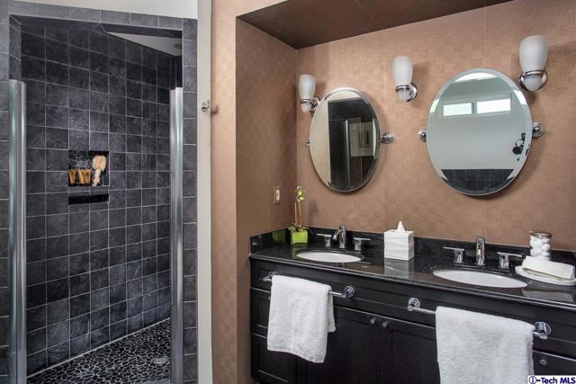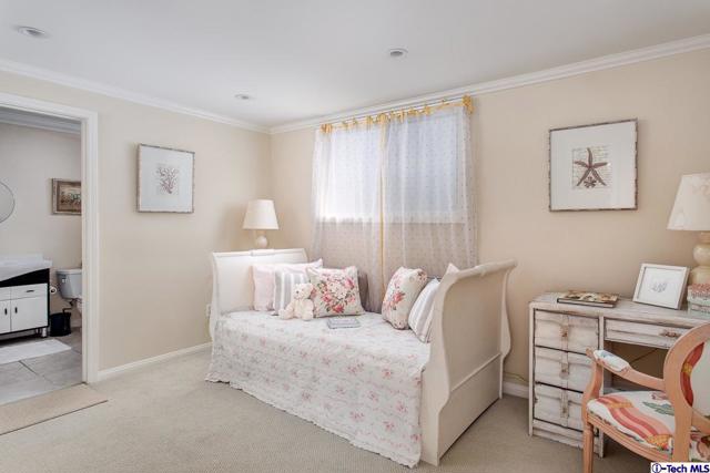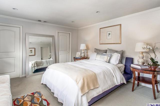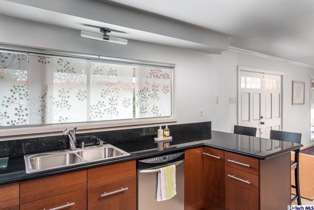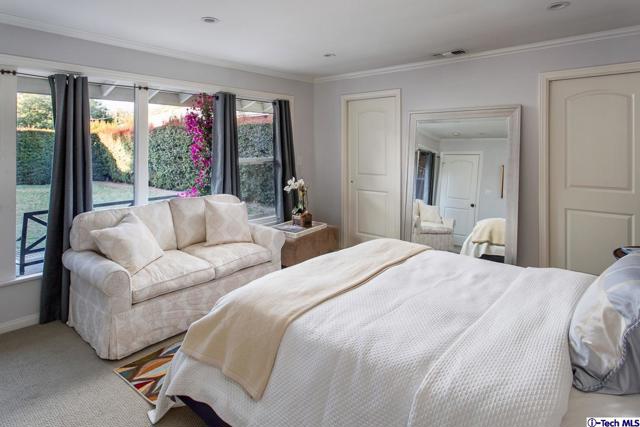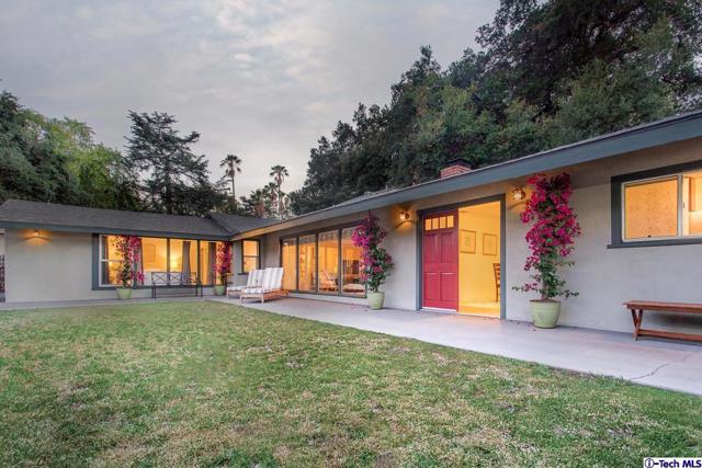 Featured on HGTV, this light-filled, mid-century modern ranch home is located in a quiet cul-de-sac close to Caltech, PCC, and the Huntington Library. Completely renovated, this pristine home features an open floor plan perfect for entertaining. Elegant double entry doors lead to tiled foyer, sleek eat-in kitchen with stainless steel appliances and granite countertops. There is a formal dining room and spacious living room with hardwood floors, picture windows, and wood-burning fireplace. Large master suite includes a walk-in closet, separate office alcove, and designer bath with double sinks, soaking tub, separate shower, and an additional storage closet. Second bedroom suite with full bath and large closet. Guest powder room and laundry area lead to a two-car attached garage. Updated electrical system, copper plumbing, tankless water heater, central heating and air conditioner, automatic sprinklers, recessed lights and remote-controlled Lutron Maestro dimmers throughout. The very private lot has a large, enclosed grass courtyard, which is ideal to blend indoor / outdoor living and can double as a kids' outdoor play area.