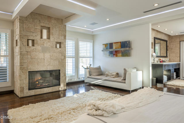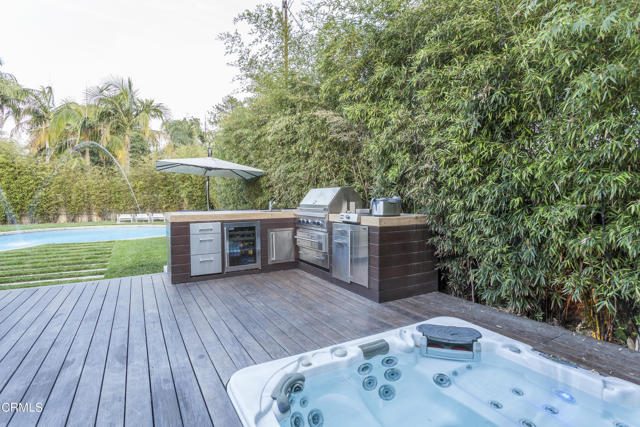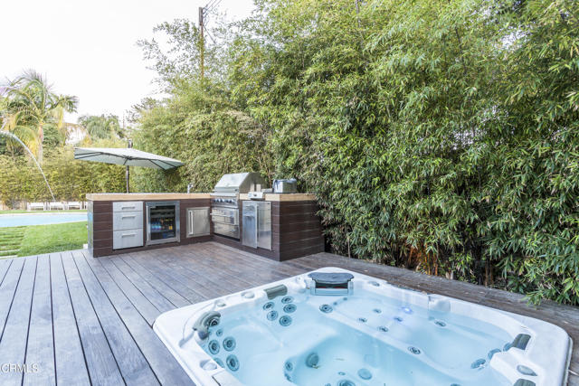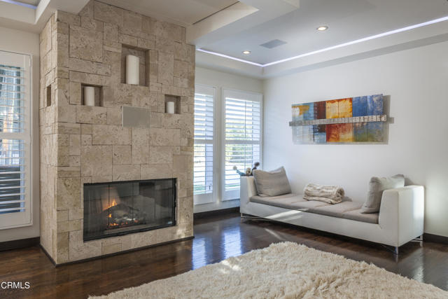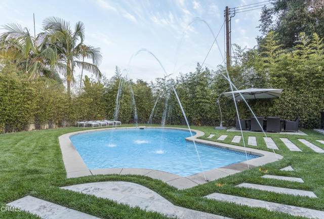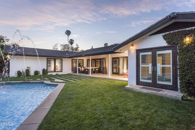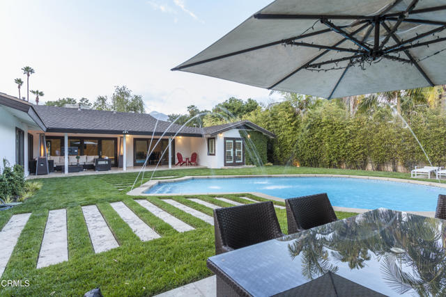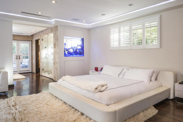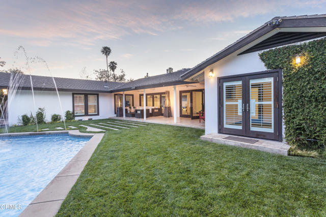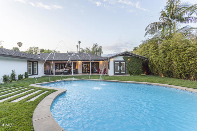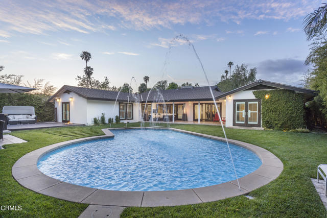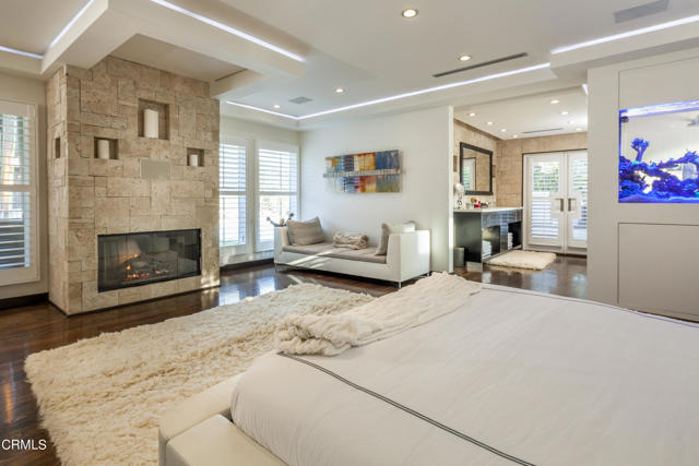 Welcome home to this lavish smart home that features four spacious bedrooms, three bathrooms, and a sparkling saltwater swimming pool and separate hot tub perfectly designed for hosting and entertaining. Nestled on a tranquil cul-de-sac, this remarkable home sits on a 10,747 square-foot lot, boasting an enchanting exterior adorned with a grassy lawn, a charming chimney, and captivating windows. Past the front door, one is struck by the high-end finishes throughout the home. The expansive living room features an airy ambiance, recessed lighting, elegant hardwood floors, a stunning fireplace, and magnificent floor-to-ceiling windows, offering breathtaking views of the landscaped backyard, complete with the inviting pool and spa--an idyllic setting for unforgettable gatherings. The gourmet kitchen features custom tile floors, luxurious granite countertops, and ambient recessed lighting. A door leads to the attached two-car finished garage, while the kitchen effortlessly flows into a delightful breakfast nook. Prepare to be captivated by the primary bedroom. Adorned with a stone fireplace, built-in speakers, a drop-down TV, and a custom and recently remodeled built-in saltwater aquarium, it exudes unparalleled style. An en-suite bathroom reminiscent of a luxurious resort awaits, showcasing a walk-in shower, double sinks, a spacious walk-in closet, and French doors that open to the serene spa area in the backyard. The additional bedrooms are equally enchanting, boasting ample space, built-in speakers, and generous closets. There are many things to love about this stylish home, especially the private oasis backyard. The sparkling swimming pool, spa, outdoor shower, outdoor kitchen with outdoor refrigerator and icemaker, outdoor BBQ, and captivating fire pit--are perfect for creating lasting memories. Experience al fresco dining within the covered patio area which has a ceiling fan. This home features a Sonos sound system inside and out, CCTV cameras indoors and outdoors, a 3-zone AC system, and Lutron lighting. The finished attached garage has air conditioning and can even be used as a home studio! This home is the epitome of indoor-outdoor living! Do not miss the chance to call this contemporary home yours!