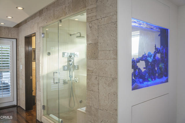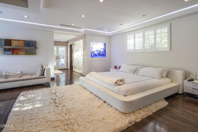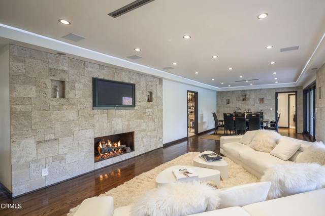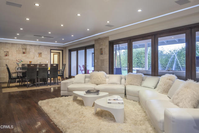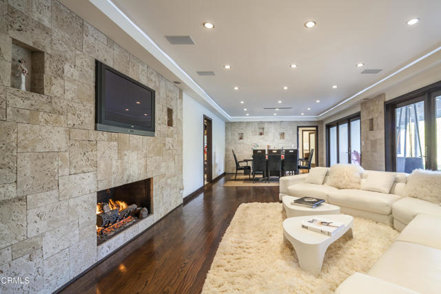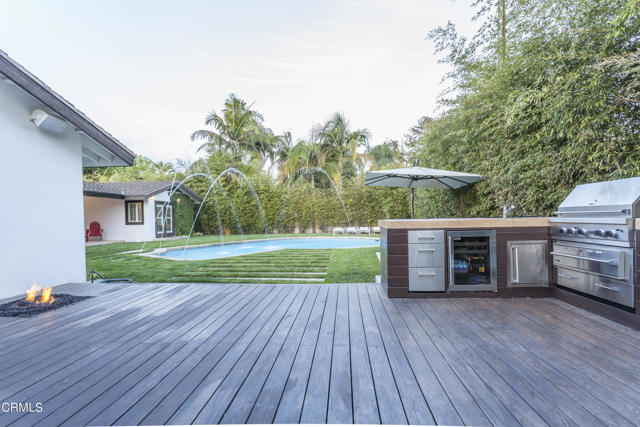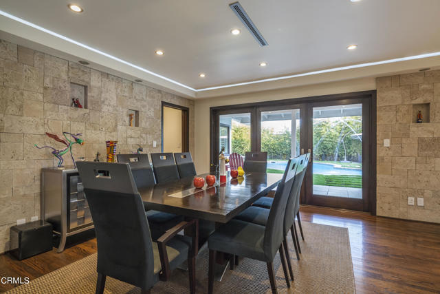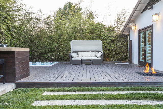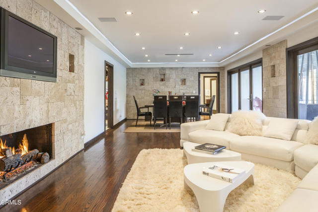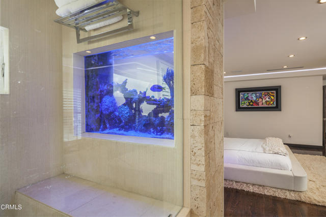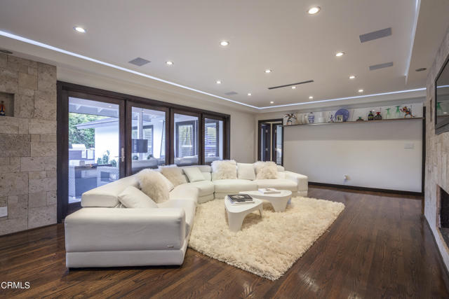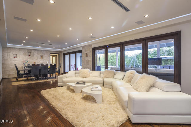 Welcome home to this lavish smart home that features four spacious bedrooms, three bathrooms, and a sparkling saltwater swimming pool and separate hot tub perfectly designed for hosting and entertaining. Nestled on a tranquil cul-de-sac, this remarkable home sits on a 10,747 square-foot lot, boasting an enchanting exterior adorned with a grassy lawn, a charming chimney, and captivating windows. Past the front door, one is struck by the high-end finishes throughout the home. The expansive living room features an airy ambiance, recessed lighting, elegant hardwood floors, a stunning fireplace, and magnificent floor-to-ceiling windows, offering breathtaking views of the landscaped backyard, complete with the inviting pool and spa--an idyllic setting for unforgettable gatherings. The gourmet kitchen features custom tile floors, luxurious granite countertops, and ambient recessed lighting. A door leads to the attached two-car finished garage, while the kitchen effortlessly flows into a delightful breakfast nook. Prepare to be captivated by the primary bedroom. Adorned with a stone fireplace, built-in speakers, a drop-down TV, and a custom and recently remodeled built-in saltwater aquarium, it exudes unparalleled style. An en-suite bathroom reminiscent of a luxurious resort awaits, showcasing a walk-in shower, double sinks, a spacious walk-in closet, and French doors that open to the serene spa area in the backyard. The additional bedrooms are equally enchanting, boasting ample space, built-in speakers, and generous closets. There are many things to love about this stylish home, especially the private oasis backyard. The sparkling swimming pool, spa, outdoor shower, outdoor kitchen with outdoor refrigerator and icemaker, outdoor BBQ, and captivating fire pit--are perfect for creating lasting memories. Experience al fresco dining within the covered patio area which has a ceiling fan. This home features a Sonos sound system inside and out, CCTV cameras indoors and outdoors, a 3-zone AC system, and Lutron lighting. The finished attached garage has air conditioning and can even be used as a home studio! This home is the epitome of indoor-outdoor living! Do not miss the chance to call this contemporary home yours!