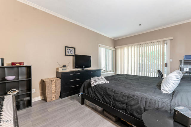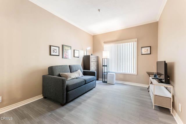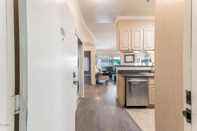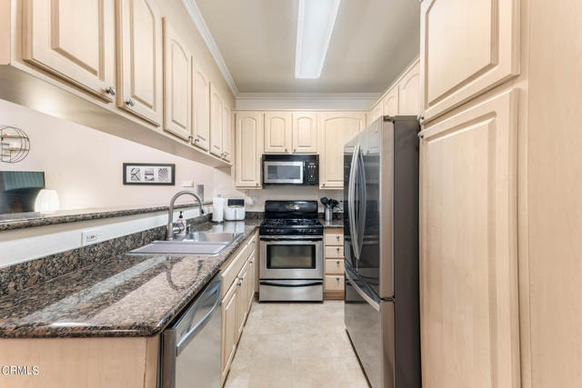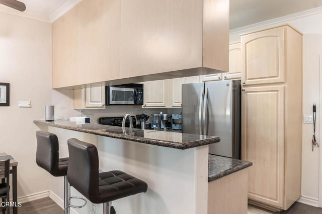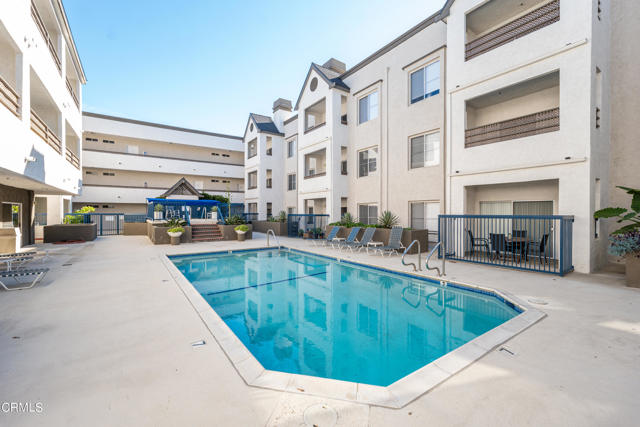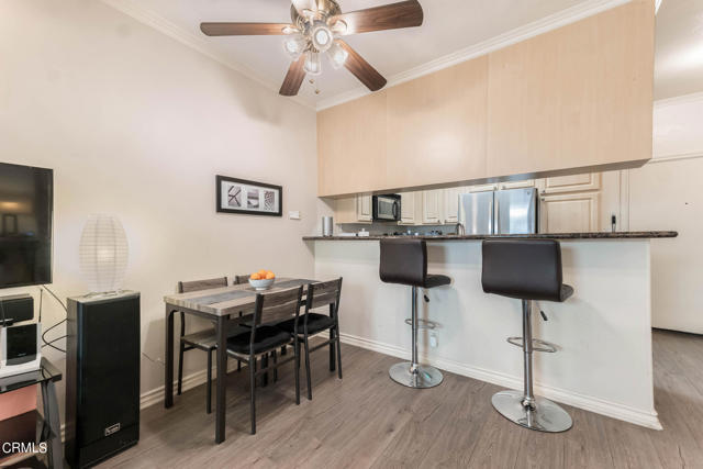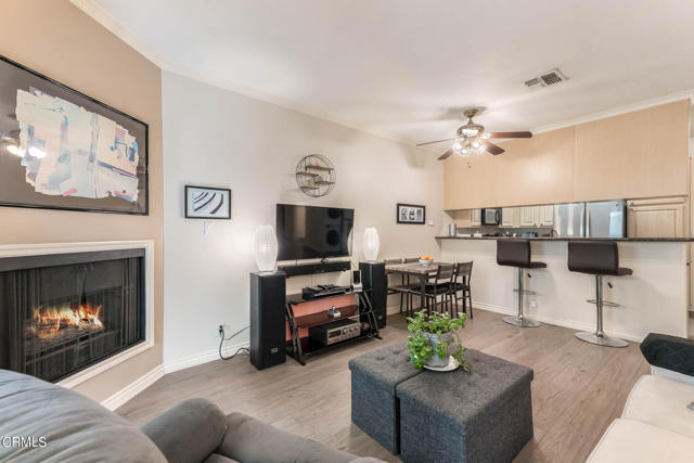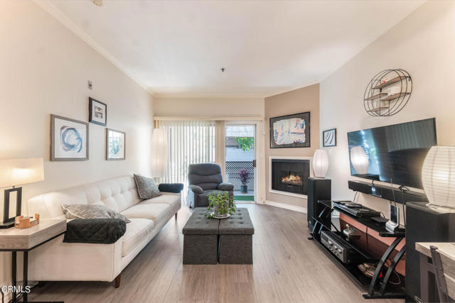 Discover refined living in the heart of Pasadena with this impressive two-bedroom condominium boasting modern luxury and convenience. Inside, you'll be greeted by contemporary wood like flooring that extends through the living room and hallway, while both bedrooms feature newer modern flooring creating a cohesive and stylish atmosphere throughout. The kitchen is a chef's delight with granite countertops and stainless steel-style appliances. Revel in the culinary arts with a newer single-bay sink, dishwasher, French door refrigerator, gas range and microwave. The living room is a perfect gathering space with an inviting gas fireplace and also features a ceiling fan casting a gentle breeze over the dining area and breakfast bar that seamlessly integrates style and functionality. Adjacent to the living room is a delightful patio that is perfect for relaxing or entertaining. The primary bedroom is generously sized and offers a walk-in closet and its own wrap around patio. The convenient interior laundry area includes a newer LG washer and dryer. The community is designed for your ultimate enjoyment, featuring a relaxing central courtyard with a sparkling pool and spa, a well-equipped gym, a sauna, and a community lounge for social gatherings. Enjoy the advantages of this prime Pasadena location offering close proximity to the Playhouse Village Park and Dog Park, independent shops, an array of dining options. Embrace a lifestyle of refined elegance and modern comfort and don't miss the opportunity to call this lovely condo your home!