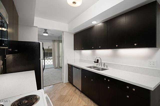 Surrounded by lush landscaping, this uniquely charming and spacious end unit condominium is nestled in a prestigious neighborhood minutes from CalTech, PCC, Huntington Library, South Lake dining and shopping. This updated space has a freshly painted interior, new carpeting, new remote ceiling fan/light fixtures, new curtains, various new hardware, new medicine cabinets, new kitchen ceiling and under cabinet lighting. Features include one en suite, central AC/heat, wet bar, fireplace in the living room area, high ceilings, two sets of sliding doors, and a large balcony for entertaining. Common area with pool/spa and BBQ. Elevator from parking to second level. Off street gated carport parking for one vehicle and guest parking. Some photos have been staged.
