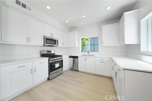 Your chance to own this stunning 4 bed/2.5 bath home located in the city of Pomona. The first level, an open floor plan consisting of a desirable kitchen, great room and laundry room. Kitchen with white cabinets, granite countertops, and stainless-steel appliances. All four bedrooms are situated on the second floor, an elegant primary suite showcasing a generous walk-in closet and a private bath with double sink. You will enjoy the other 3 bedrooms and a shared hall bath on the second floor. New flooring and paint throughout. Private back yard provides you the outdoor relaxation. Yanch Villa is a quiet community of 7 homes. This home is within close proximity to freeway, shops, markets, and schools. Don't wait, this opportunity won't last for long.