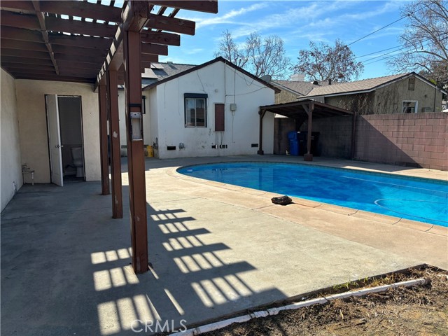 Contractors Delight! Nice sized bedrooms, partial remodeled bathroom in main house, convenient 2nd bathroom connected to garage for guests to use while swimming or entertaining. New roof installed. Grass area behind garage for pets to roam or to maybe a cozy fire to relax and enjoy. Solar Panels installed, buyer can choose to keep, or they can be removed (inquire for details). Concrete slab around pool area and a corner patio for shade. Stove, Washer and Dryer included.