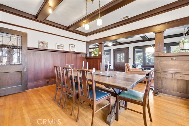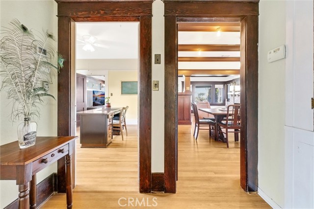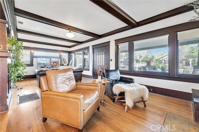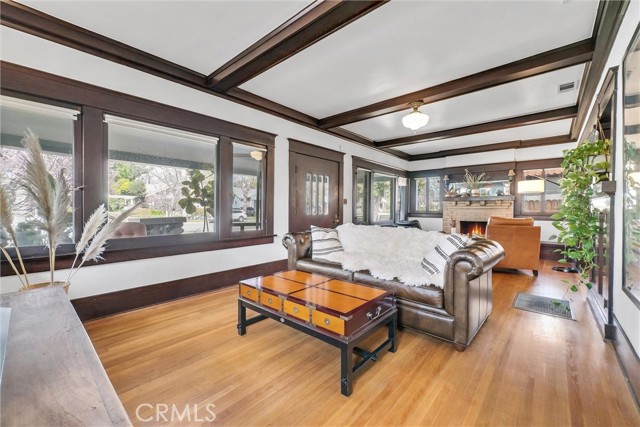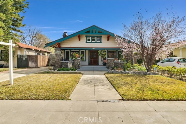 A True California Craftsman Bungalow nestled in the historic neighborhood of Lincoln Park! Impeccably kept 1913 home and a delight from the moment you pull up. Its inviting porch, built with River Rock, welcomes you as you step back into time. The home has updates throughout meant to preserve its original character. Enter into a large living room that opens to the formal dining area. The dark wood trim, exposed beams, original hardwood flooring, and built-in shelves are just a few of the original features of this home; an added feature to the living spaces are the picture rails that line the perimeter of the interior. Even the accent lighting in the main living room and dining area are original. Enter into the farmhouse kitchen & mudroom where you will see the original Alabama Yellow Pine floors, large pantry & broom closet along with a deep sink wash basin in the laundry/mudroom. One of the biggest benefits of this Bungalow is getting to experience this historic home while having the added benefit of a third bedroom and two full bathrooms. This large lot offers multiple raised garden beds, a concrete patio, a tool shed, and an original carriage house that can serve as a small one-car garage or potential ADU, with access from the alley. The roof is only one-year old! Two blocks from family-friendly Lincoln Park playground. 5-minute drive to LA County Fairplex. 10-minute drive to charming Downtown Claremont. Fantastic proximity to zero-hassle Ontario Airport. Listed on the National Historic Registry with potential Mills Act tax savings.
