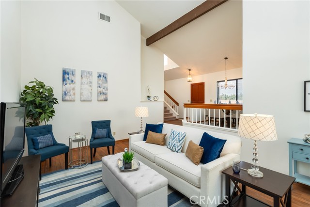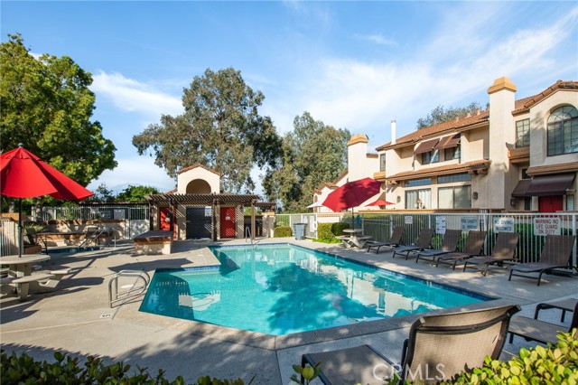 Back on Market! Welcome to Hidden Valley, the hidden gem of Phillips Ranch! This beautiful home is tucked away amid lush greenery and located just steps away from one of two community pools. As you enter the front door, the gorgeous beamed cathedral ceilings, and and tons of natural light welcome you home! The kitchen is light and bright and the perfect space for whipping up a delicious meal. Enjoy the beautiful mountain views from your dining room on a clear day! The sunken living room is generous with a gas fireplace, perfect for cozying up on those chilly winter nights. As you head up the stairs you are greeted by a versatile secondary bedroom. It can be used as an office, den or bedroom. In the hall you'll find a full bathroom, coat and linen cabinets for extra storage. The primary suite is spacious with vaulted ceilings, two closets, large soaking tub and separate water closet. A true retreat where you can relax and ease the stress of the day. Love to entertain? The patio is extra large and perfect for hosting BBQ's, dinner parties or an amazing space for the avid gardener. Care to take a dip? The pool and heated spa are just steps from your front patio! The community is perfectly situated in close proximity to the 60, 57, and 71 freeways, as well as grocery stores, restaurants and shopping. Come take a look, fall in love and make this home yours!