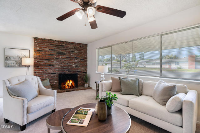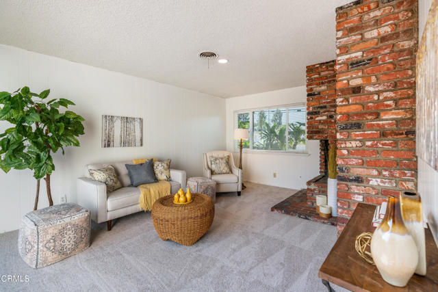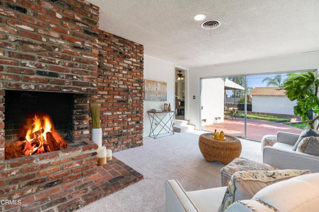 The appeal of this charming 3-bed, 2-bath home starts at the curb with the grassy lawn, adorable farmhouse & brick facade details, and winding walkway leading up to the front door. As you step inside, you're greeted by a welcoming living room with a handsome brick fireplace and large front window allowing natural light to fill the space. The adjacent dining room is warm & inviting and accesses the covered back patio creating a nice flow for al fresco dining on warm summer evenings. The original kitchen is large and exudes nostalgic charm, offering a canvas for your creativity and personal touch to bring it to your specifications. Relax or entertain in the family room, a versatile space with a second brick fireplace and large sliders to the backyard. There is a full guest bathroom and 3 bedrooms, one with an ensuite bath, and another with a charming built-in window bench seat. Outside lies a sprawling yard, providing ample space for gardening enthusiasts to cultivate their green paradise. Imagine mornings spent sipping coffee on the covered patio or weekends kicking a ball around with loved ones. There is also a convenient separate laundry room and a detached 2-car garage. With a little TLC, this property can be transformed into your dream house. Just around the corner from Ted Greene Park and with easy access to shops, restaurants, and freeway access, this house is ready to be your home for years to come!