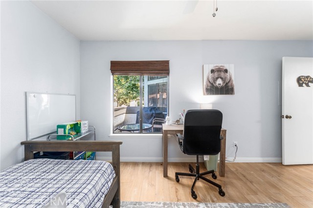 Welcome to this Move in Ready Condo in the sought after area of Phillips Ranch. This property is a 1 level Condo with a open floor Plan. It Offers 2 Large bedrooms and 2 full bathrooms. There is newer wood floors throughout the home. The bright and open living room offers vaulted ceilings and a fire place. It offers a sliding glass door to your patio overlooking the pool and hills. The home has a large kitchen with plenty of cabinets and counter space. The main bathroom has a large counter and a tub and shower combo. The oversized master bedroom offers high ceilings, large closets, 2nd balcony overlooking the pool and hills. The master bath offers plenty of space and a shower/tub combo. There is 1 parking spot in a shared garage and you can request a 2nd unassigned parking space with a permit. The community amenities offer a pool, spa and a clubhouse. The Condo is conveniently located to shopping centers and the 60, 71 and 10 fwys.