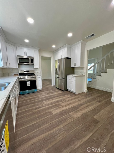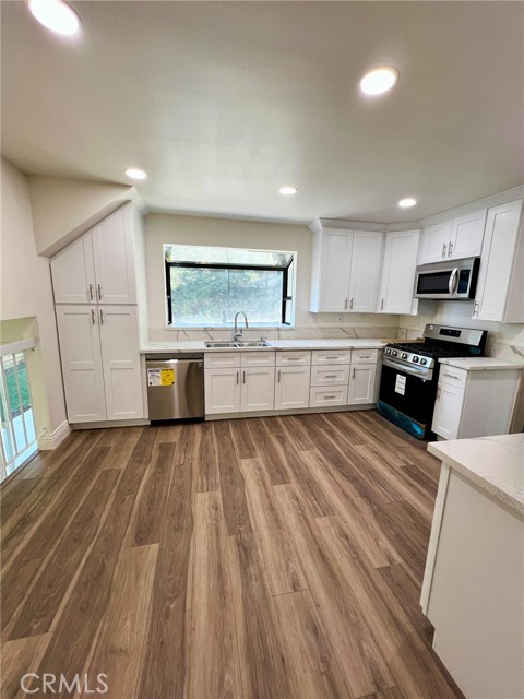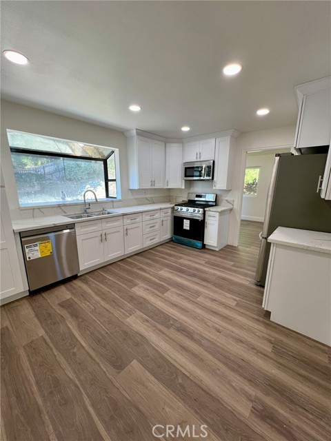 Welcome to this charming 3-bedroom, 2.5-bath tri-level home in Phillips Ranch, a master-planned community designed to harmoniously blend with nature. Built in 1981, this residence has undergone a complete remodel, ensuring a modern and comfortable living experience. As you enter, you'll be greeted by the vaulted ceilings and an abundance of natural light that fills the space, creating a warm and inviting atmosphere. The living and family rooms provide versatile spaces for relaxation and entertainment, and a convenient wet bar in the living room for those who enjoy hosting gatherings. The heart of this home is the brand-new kitchen, fully equipped with modern appliances, including a refrigerator, stove, and microwave. Enjoy the cozy ambiance of not one but two fireplaces, located in both the living room and the master bedroom. This residence is perfect for families or newlyweds, offering three spacious bedrooms and ample room for everyone to thrive. The newly installed dual-pane windows, flooring, lighting fixtures, and fresh interior and exterior paint contribute to the home's updated and polished appearance. Situated centrally in Phillips Ranch, this property provides easy access to the 71 Police Officer Daniel T. Fraembs Memorial Hwy and is conveniently located near the 60, 10, and 57 freeways, making any commute or travel a breeze. The neighborhood's history, rooted in the land once owned by the richest man in Los Angeles County, adds a unique and rich context to your living experience. Embrace the charm and convenience of Phillips Ranch, where everything you could possibly need is within reach. Make this beautifully remodeled home your sanctuary, combining modern amenities with a connection to nature and a rich history.