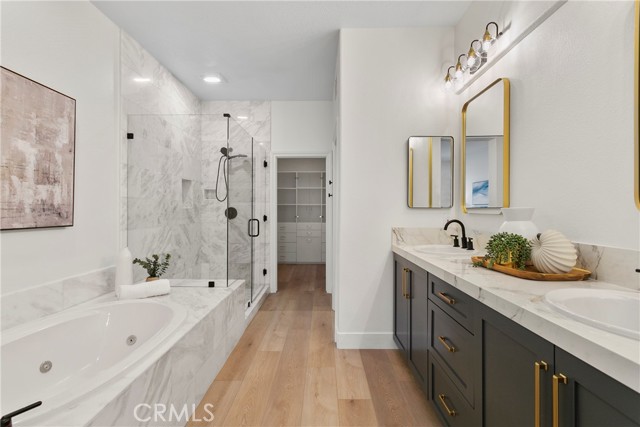 Welcome home! You’ll love this elegant, newly remodeled single level 55+, 2 bedroom 2.5 bath, view home. Located in the highly desired gated community of Sea Garden in The Gallery at Talega. This home is fully remodeled including luxury hardwood flooring throughout, all new custom cabinetry with slow close, and beautiful porcelain countertops with marble backsplashes. The kitchen is spacious and open to the family room, with a large center island, farmhouse sink, and all new appliances. The family room has a beautiful built in entertainment center and fireplace with a custom mantel and floating shelves. This home also features a formal dining room, living room or office with french doors leading to the private courtyard. The master suite is gorgeous with a newly remodeled bathroom and large walk in closet. The secondary bedroom is spacious and has a private bath. This home features new lighting throughout, upgraded finishing touches and hardware. There is an inside laundry room with sink and a two car garage with a driveway. You will love the high ceilings and amazing light that comes through large windows opening to your sunset facing view lot. The backyard is perfect for entertaining and completely private, overlooking the hills. Enjoy the active Gallery Club Community which boasts a library, card room, billiard room and a fitness center. Just outside the Clubhouse are bocce courts, a croquet field, a putting course and a swimming pool & spa. You’ll also love resort style living as part of the Talega Community. Enjoy amenities such as a golf course, several walking and hiking trails as well as many parks and nearby restaurants. Don’t miss this one! It won’t last long.