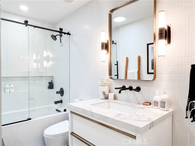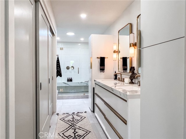 Welcome to 3445 Paseo Flamenco, a stunningly renovated home where contemporary luxury meets thoughtful design. Located on the ocean side of the 5 freeway, this property offers unparalleled convenience with Sprouts, TJ Maxx, HomeGoods, and Nordstrom Rack all within walking distance. Enjoy the proximity to parks and beaches, with the ocean just minutes away. From the moment you step inside, you’ll be captivated by the vaulted ceilings and the abundance of natural light, thanks to bright overhead skylights and strategically placed solar tubes ensuring every corner is well-lit. The home features a built-in desk area, perfect for working from home. The kitchen and bathrooms have been fully updated with high-end finishes, including durable porcelain oversized concrete-look floor tiles, a stucco-finished gas fireplace with new interior tile, and premium Restoration Hardware vanities, chandeliers, and sconces. The master suite offers a spa-like retreat with a large, independently controlled double-headed shower with a bench, and an oversized deep tub in the guest bath. The closets throughout the home have been meticulously rebuilt for optimal storage. Step outside to your private front courtyard, and enjoy the new rear fence with glass top paneling and a new front gate with a security pad. The backyard overlooks a lush greenbelt, providing privacy with no neighbors behind. A brand new AC system ensures comfort year-round, and the home is equipped with a tankless water heater and full home water filtration and softener systems. The house has also been repiped, and much of the electrical system has been updated. The kitchen is beautifully appointed with stainless steel appliances, white oak-faced cabinets, a European-style high gloss pantry wall, and a stunning porcelain marble-look waterfall peninsula. Modern fans with remotes are installed in the family room and bedrooms for added convenience. Additional highlights include new front double doors with frosted privacy glass, new rear French doors with glass and sidelight in the living room, new French doors in the master bedroom, a two-car garage with all new interior doors and hardware, and new closet doors and hardware. This home is designed to impress and is ready for you to move in and enjoy. Experience the perfect blend of style, comfort, and modern amenities at 3445 Paseo Flamenco. Don’t miss the opportunity to make this exceptional property your new home!