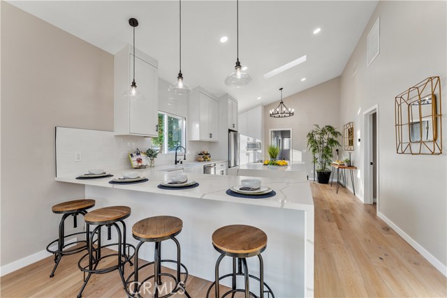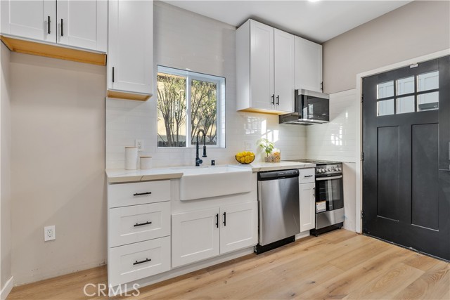 Discover the perfect blend of modern luxury and farmhouse charm in this brand-new, single-story residence in the sought-after city of San Gabriel. This property features a 1,574 SF 3 bedroom 3 bathroom main house as well as a 321 SF 1 bathroom studio ADU with full kitchen and also provides a fully insulated and finished 2 car garage to either park cars or expand the ADU space. All construction was completed with full city sign off, approval and inspection. Unparalleled craftsmanship with only the highest quality materials. The main house boasts three elegant bedrooms and three bathrooms, complemented by a detached two-car garage. Experience the pinnacle of open-concept living beneath stunning, high vaulted ceilings, illuminated by natural sunlight streaming through new matte black dual-panel windows. The heart of the home is the modern kitchen, equipped with top-of-the-line stainless steel appliances, quartz countertops, soft-close cabinetry, and a chic subway tile backsplash. Every detail has been carefully curated, from the recessed lighting in every room to the brand-new hardwood flooring flowing throughout. The master bedroom, a serene retreat, features an ensuite bathroom with a walk-in closet. Fully renovated bathrooms showcase designer tiles and contemporary cabinetry. Outside, the professionally landscaped front and backyard offer a low-maintenance oasis with beautiful succulents. The separate ADU unit, complete with a studio, kitchen area and bathroom, adds versatility and value. Nestled on a quiet street, this home is a testament to sophisticated living and must be seen to truly appreciate its numerous upgrades and elegant design.