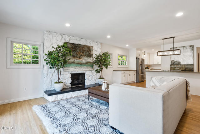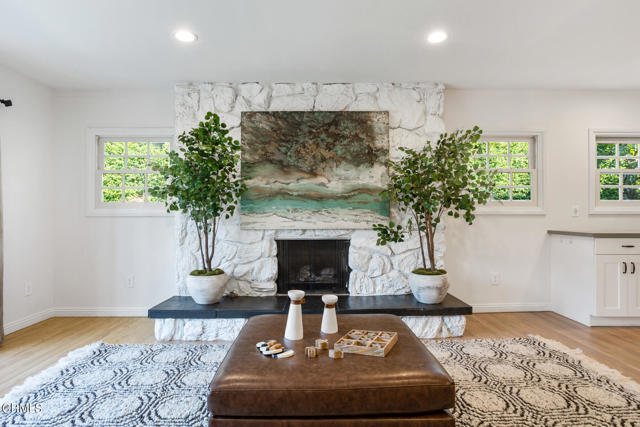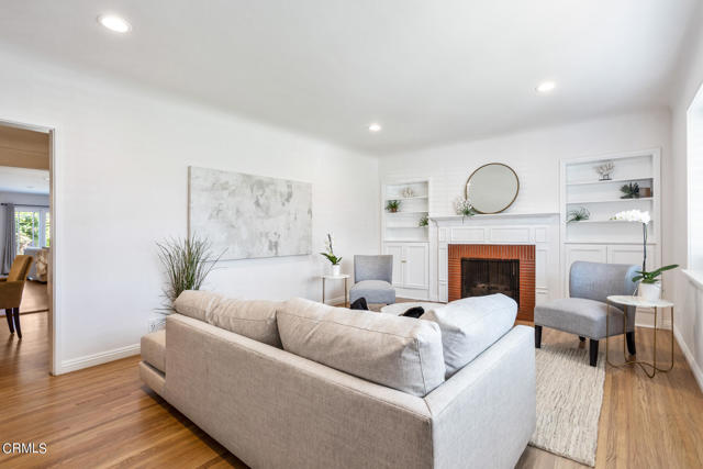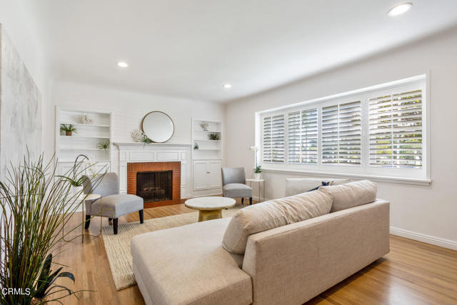 This sweet Traditional starts with a wonderful North San Gabriel location at the end of a club-de-sac and graced by a lovely Sycamore tree in the front yard. Recently refinished hardwood floors will delight you the minute you open the front door. The living room has a gently coved ceiling, lovely front picture window and classic brick fireplace with built-ins. This is exactly what you've been looking for! Complete with a formal dining room and great room with another fireplace, this home offers plenty of space for all your day to day needs. The recently remodeled kitchen is light and bright with lots of counter space and cabinets for all your cooking needs. The great room offers lovely sliding doors for easy flow to the spacious and lush rear patio and garden area. There are three gracious bedrooms, including a primary en suite. The primary bedroom is quite spacious and also offers beautiful sliding doors to the rear yard. The front bedroom is also quite spacious and has an adorable bay window with leaded glass looking out to the Japanese Maple tree. The front and middle bedrooms share an original hall bathroom with sweet yellow and blue tile. This is the perfect place to call home.