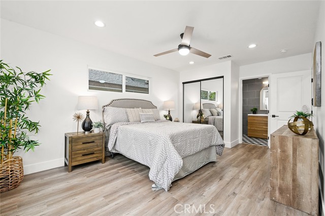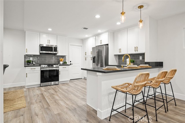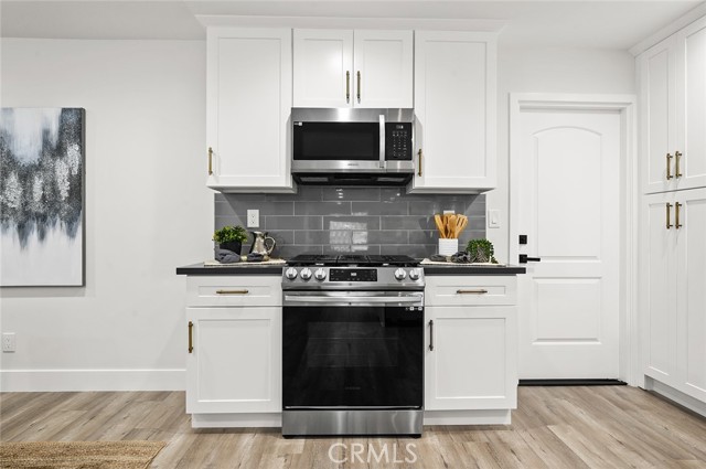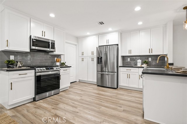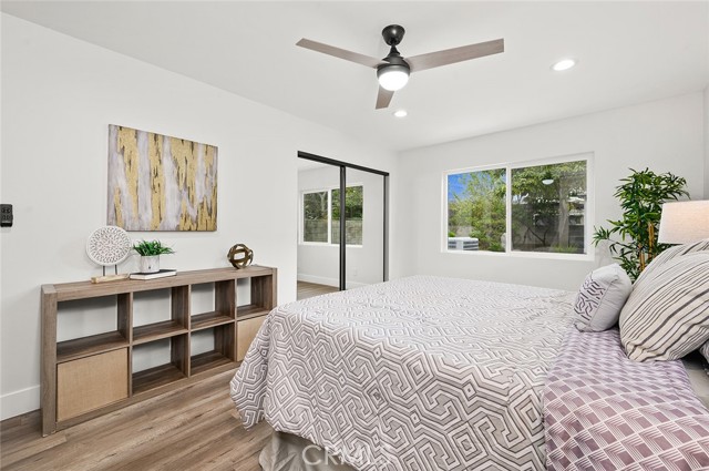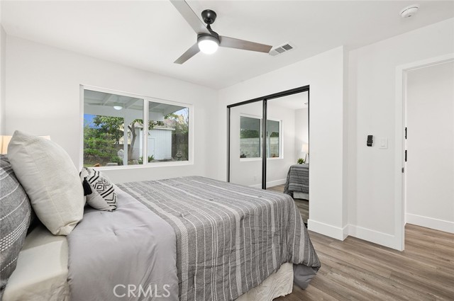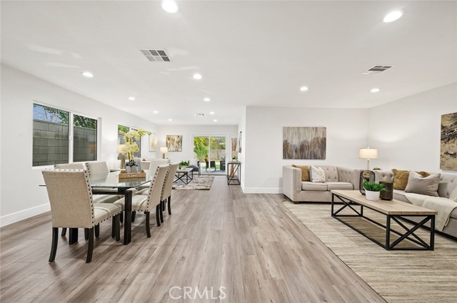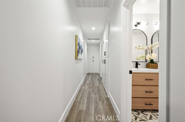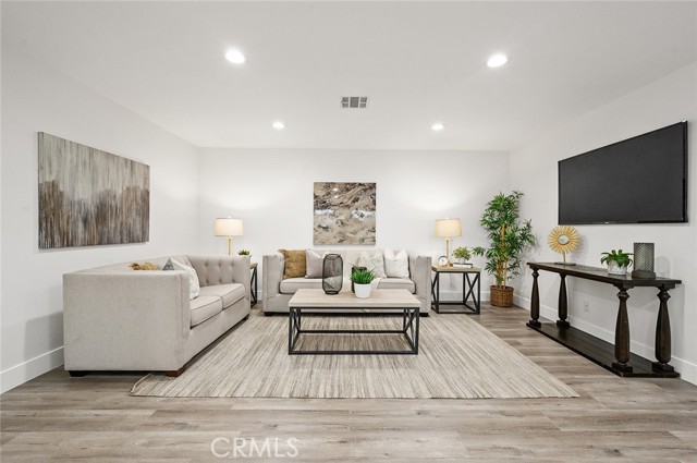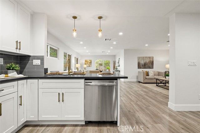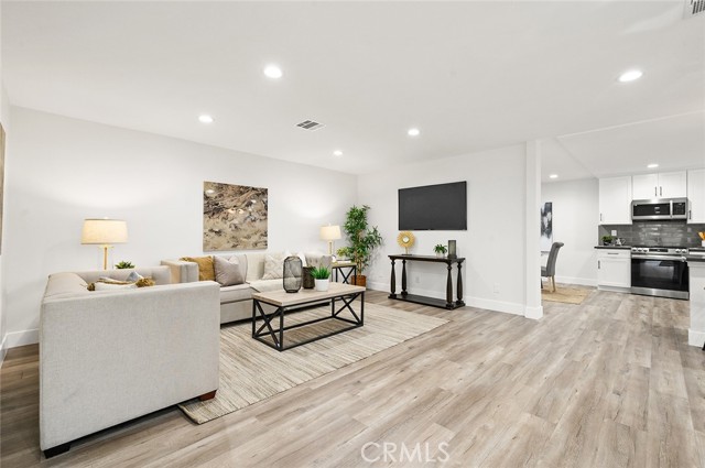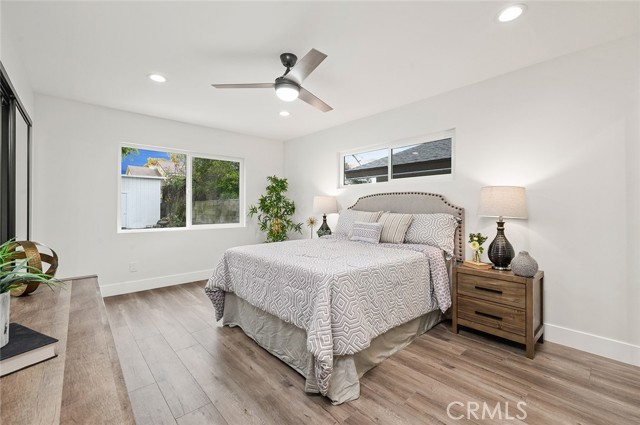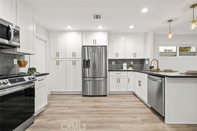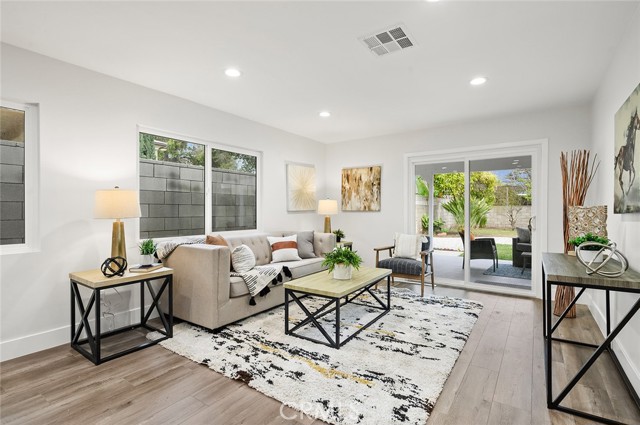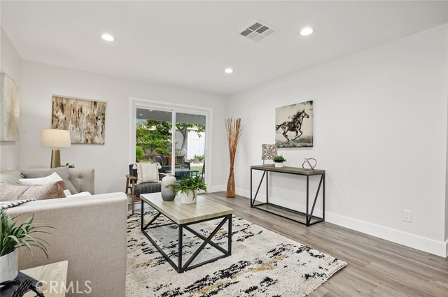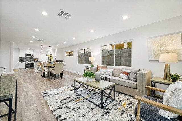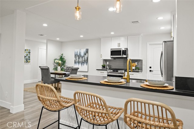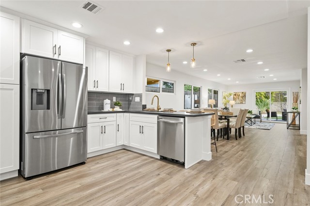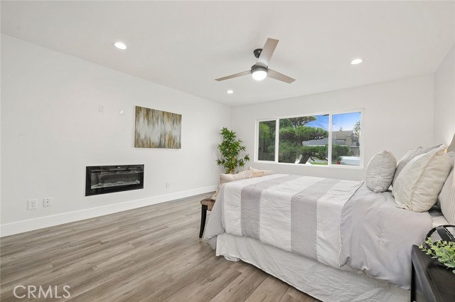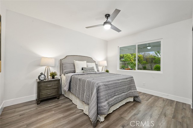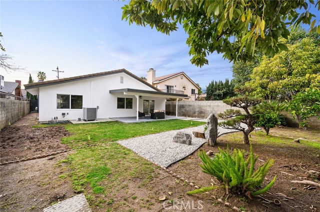 A beautifully renovated home with the avid entertainer in mind will take your breath away at first impression! A long entryway with a built-in shoe closet welcomes you upon arrival. Come inside to discover a contemporary look with neutral-hued palette across an open layout with wood-like floors flowing gracefully throughout. The home chef can serve gourmet meals from the kitchen that offers stainless steel appliances, stylish pendant lighting, elegant white cabinetry, and gold accents, defining your culinary space. The kitchen flows into a vast living room and dining area, perfect for entertaining. Four generously sized bedrooms with wood-look floors, recessed lights, and ceiling fans are sure to wrap you in total serenity. The primary bedroom features two closets a beautifully designed bathroom and a view of the tranquil backyard. One of the bedrooms can be used as a dedicated home office, a den, or a guest bedroom and features a walk-in closet and a fireplace that lends warmth to the space. A second bathroom with a dual sink vanity showcases clean, refined touches. Living here, you’ll want to carve out time for leisure and relaxation in your sensational outdoor oasis made up of 2 avocado trees, a variety of citrus trees, a koi pond, a shed for extra storage, and a covered patio. As if that weren't enough, the immaculate home also features an attached 2-car garage with washer dryer hookups and has convenient direct access into the kitchen. Situated near shops, restaurants, schools and melding a contemporary layout with comfort-inducing bedrooms, terrific spaces for entertaining, and a superb location, you will be instantly captivated by this gem. Additional BRAND-NEW features include copper piping, electrical wiring, HVAC system, double pane low-e vinyl windows, recessed lighting, laminated wood flooring, baseboards, fresh paint inside and out, front and backyard sprinkler system, plus so much more!