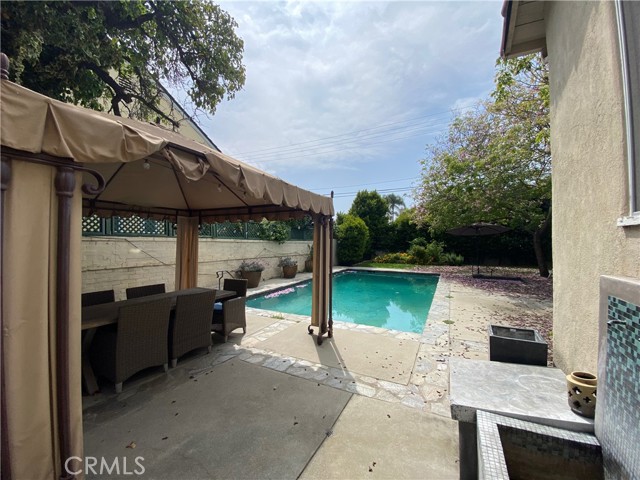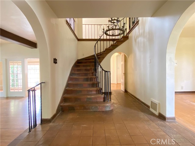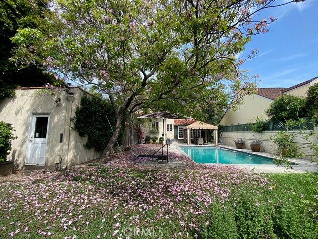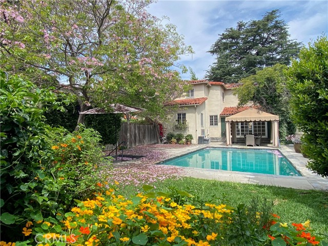 This lovely Mediterranean home is located on a beautiful tree-lined street, in the lovely Mission District of San Marino. The Turreted entry leads to a beautiful Foyer facing a winding staircase with wrought-iron banisters and a beautiful round chandelier. The main level offers a large bright living room with beamed ceilings and plenty of windows. The formal dining room is great for entertaining or dinner parties. The sun room can be used as a family room, exercise room, or a secondary dinning area. The Kitchen has been updated with granite countertops, and is adjacent to the downstairs bedroom, bathroom, and laundry area. Upstairs you will find a large Master Suite with a private balcony and updated bathroom. There are two other large bedrooms as well as an additional bathroom upstairs. The basement is a convenient place to use for storage. And the backyard offers a sparkling salt water pool, in-ground spa, and plenty of grass for those who love to spend time outdoors.