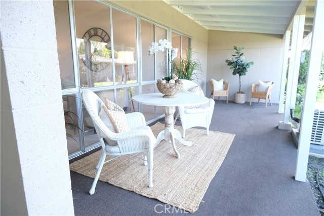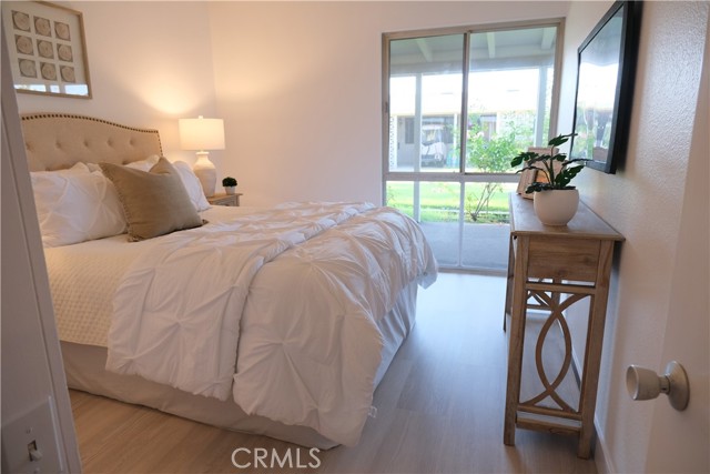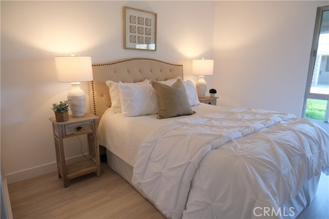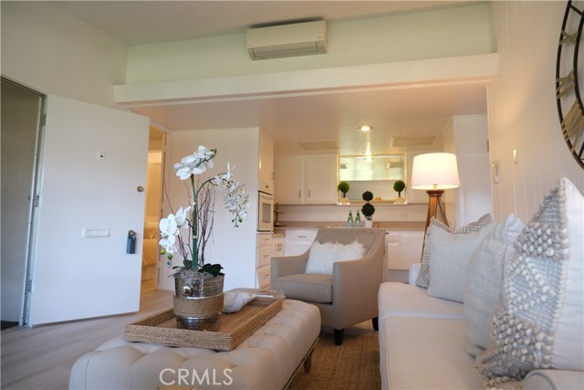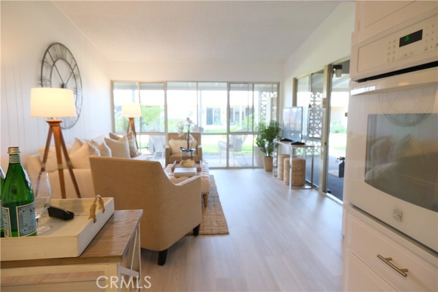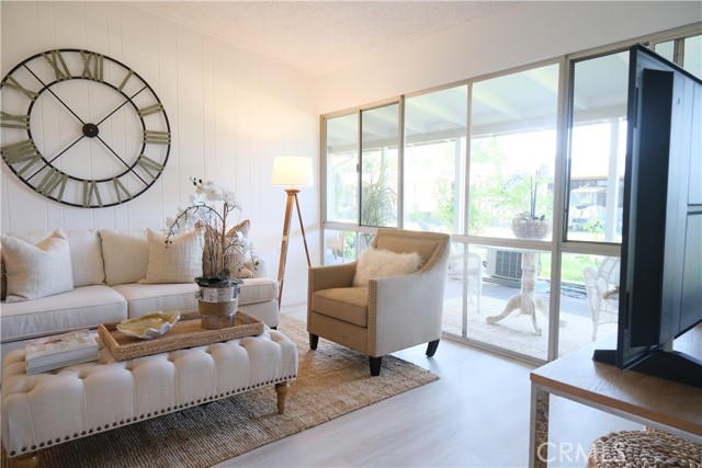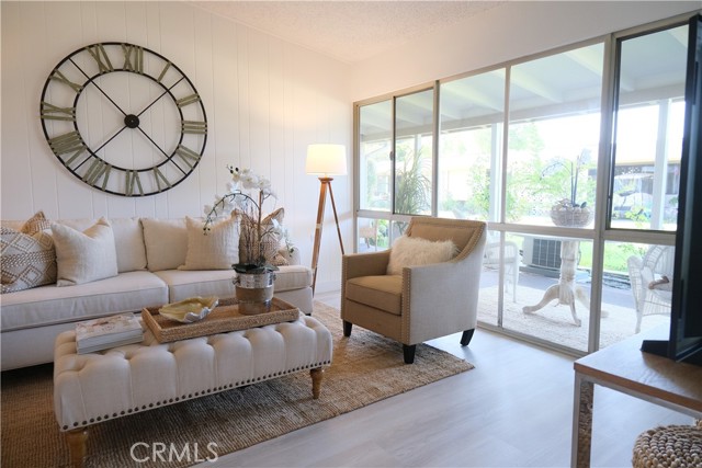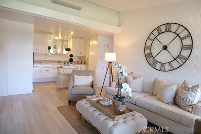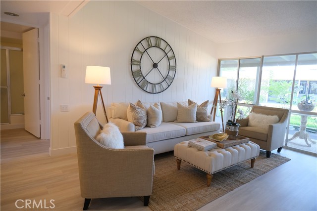 Mutual 7-153H ~ Is a lovely 2 bed, 1 bath, light and bright Leisure World home ~ move-in ready! You can sit on your quaint patio which looks out onto a lovely green. A beautiful neighborhood ~ The unit is close to parking. The patio has a built in storage cabinet and indoor/outdoor carpeting. There is brand new paint and beautiful laminate flooring throughout. Laminate countertops in kitchen, with refrigerator, electric oven and stovetop. The bathroom features a laminate countertop and cut-down shower for easy access. There is an air/heat pump in the livingroom area that provides all year round comfort. ~ This home is north-west facing with beautiful ocean breezes, parking is in building 87, space 11....Leisure World is a 55+ Senior community. Resort like, guard gated with lots of free amenities, par 3 golf, new pool, state of the art gym, open-air amphitheater for live entertainment, 6 clubhouses with plenty of activities to keep you from getting bored. Located just 1.5 miles from the beach and Seal Beach Pier. Come and see your new home by the beach!