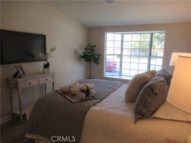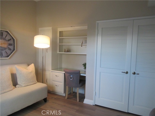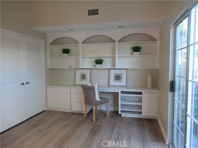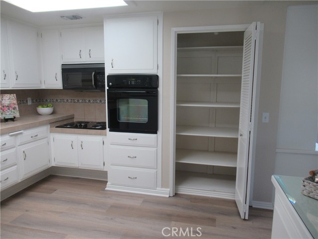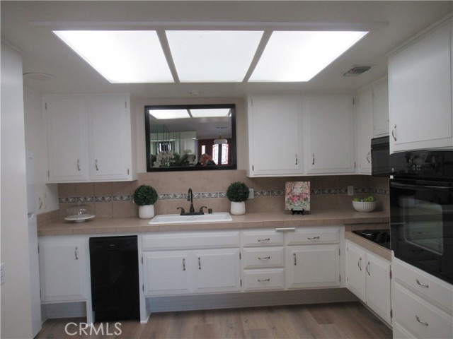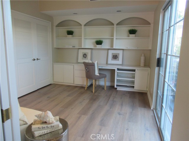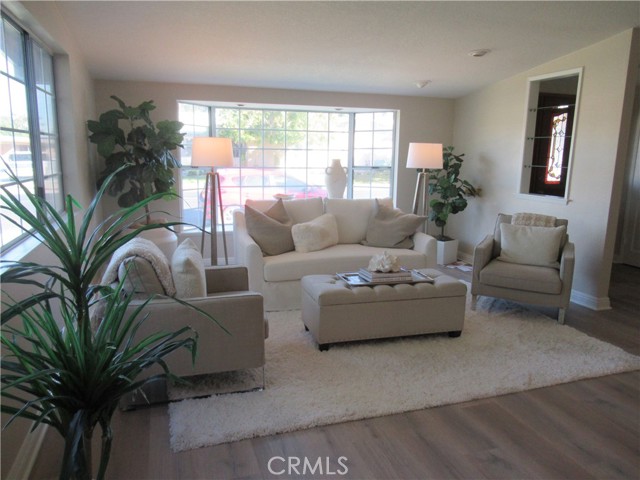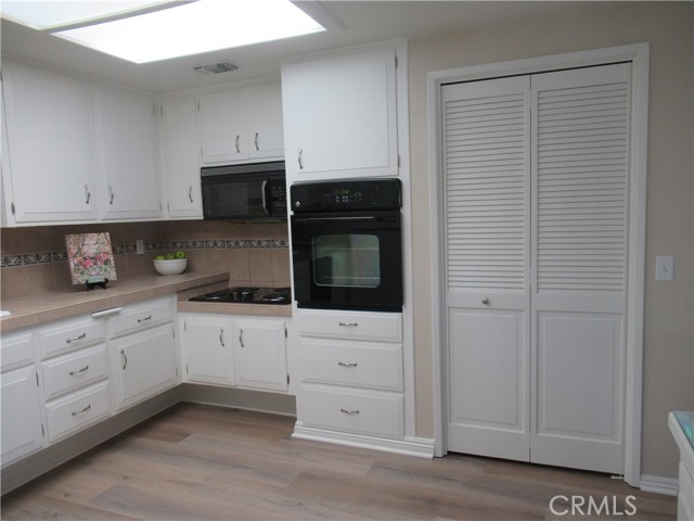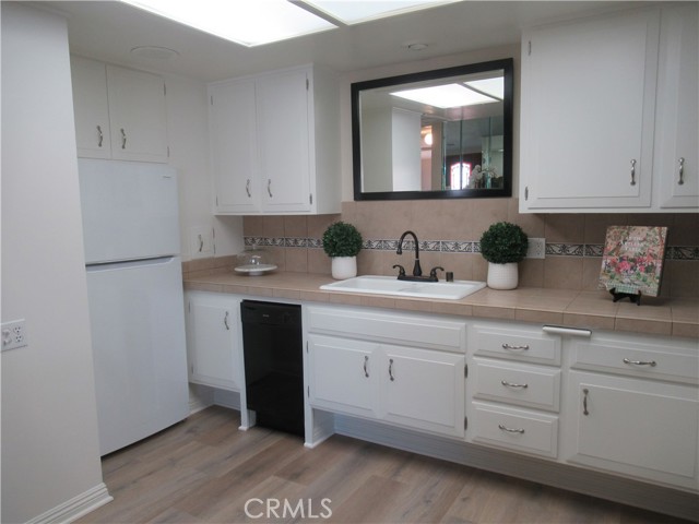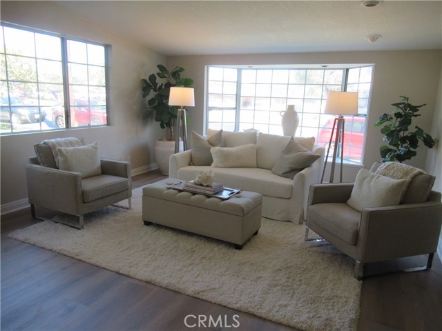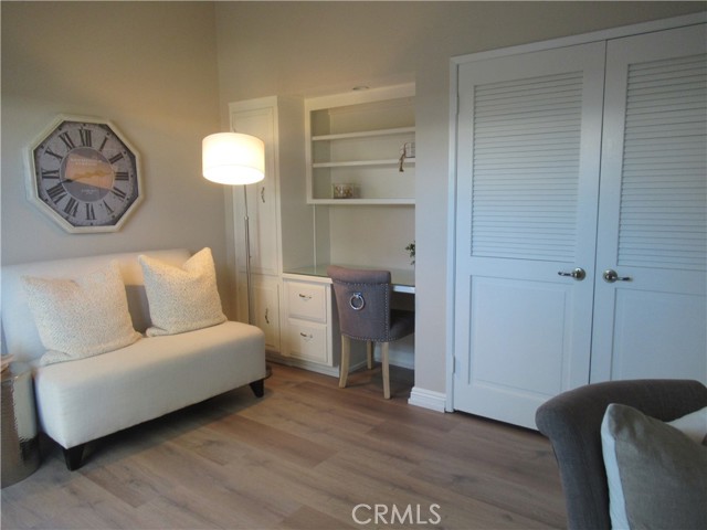 This elegant fully expanded corner two-bedroom one bathroom home features a spacious living room and formal dining room. The living room has Bay windows, recessed lighting and is adjacent to a formal dining room with a beveled-mirrored wall. The cheerful kitchen has white cabinets with tile counters, built-in appliances including a refrigerator, stove, oven, microwave, and dishwasher. The kitchen also has an extra-large skylight and an added pantry. The main bedroom has a large walk-in closet and Bay window. The bathroom has a skylight and walk-in shower. The second bedroom has a built-in wall unit with desk and sliding doors to a private side patio addition. This charming home has been painted throughout and has newly installed deluxe vinyl plank flooring with tile flooring in the bathroom. Additional features include double pane windows, central heating and new air conditioning unit added in 2023, entry closet, leaded glass entry door, an outside storage closet, and convenient drive-up parking. Don’t miss out on this beautiful home located in the resort-like community of Leisure World Seal Beach. This senior community offers over 200 clubs, activities, and organizations including a nine-hole three-par golf course, gym, swimming pool, jacuzzi, arts, crafts, amphitheater, library, health care center and so much more. Enjoy the fabulous ocean breezes that the city of Seal Beach has to offer.