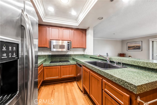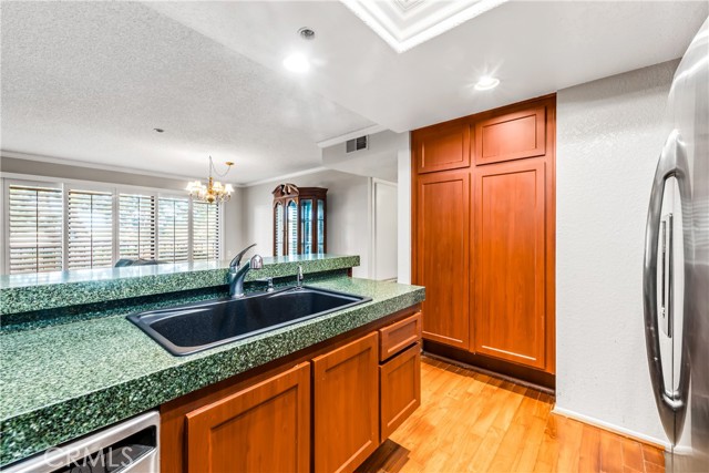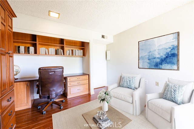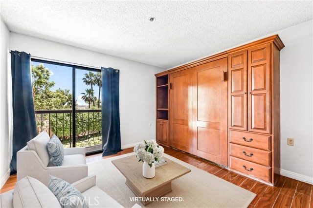 Welcome to Leisure World in Seal Beach, a 55+ community where comfort and relaxation meet in this charming single-story, two-bedroom end unit, with a covered parking spot conveniently located below the building. Being a corner unit there is an abundance of natural light and of course the wonderful Seal Beach breezes. Within this open floor plan you'll find laminate flooring throughout, creating a stylish and low-maintenance living space. The upgraded kitchen boasts stainless steel appliances, sleek countertops, and ample storage. Two spacious bedrooms provide a tranquil retreat. The primary bedroom has its own balcony, walk-in closet and private bathroom. The second bedroom is thoughtfully designed with a Murphy bed, offering versatility and space-saving options. Additionally, it features built-in desk and bookshelves, providing the perfect setting for a home office or cozy reading nook. Two private balconies, accessible from the living room, primary retreat, and spare bedroom, extend your living space outdoors. Relax and unwind while enjoying the Seal Beach breezes and scenic views. As a resident of Leisure World, there are over 200 clubs to join, swimming, golf, pickleball, walking, dances, five club houses, wood working, ceramics, pool tables and more. In the summer you can enjoy summer concerts under the stars. Leisure World is an amazing place to live! This is a condominium and can be financed.
