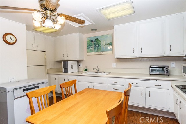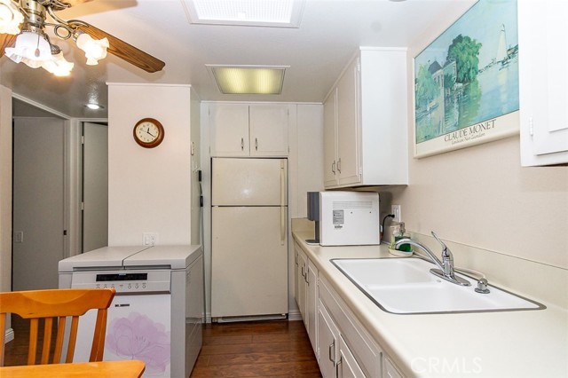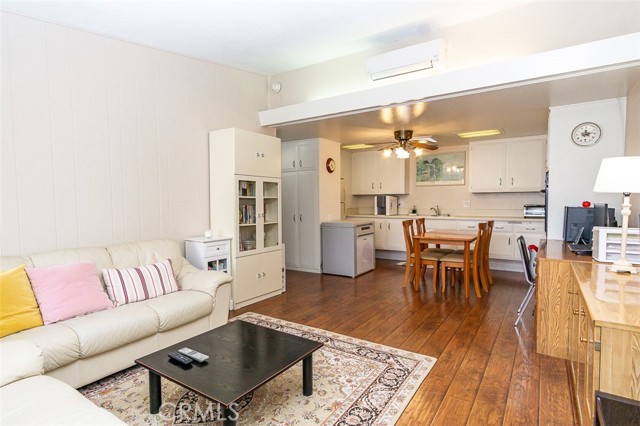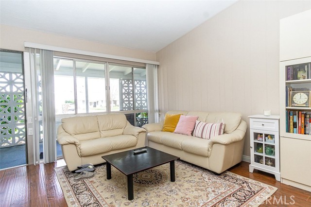 Welcome home to this inviting expanded 1 bedroom, 1 bath located on the greenbelt. This home suits a private and quiet location. It is close to laundry and carport. This home has an open floor plan, a spacious living room leading to the kitchen with enough room for a dining area. Kitchen has plenty of white cabinets, a skylight, ceiling fan, and built-in oven. The bathroom is upgraded with white cabinet, skylight, light, toilet, and hanger. The large patio includes a storage with plenty of room for organization. This home is remolded with laminated floors through out, custom paint, AC/heat, oven and blinds, This charming unit finds its place within the highly coveted Leisure World, a 55+ senior community with a 9-Hole Golf Course, a refreshing swimming pool and jacuzzi, gym, Table Tennis, Shuffle Board, Pickle Ball, Lawn Bowing, Amphitheater, Library. Friends of Books, Post office, Health Care Center and 6 Clubhouse featuring : Art room, Sewing, Crafts, Woodshop, Pool Tables, and Over 200 clubs. LWSB is security Guard Gated Community. Mutual 3 unit 5K / Parking Carport 42 Space 11.