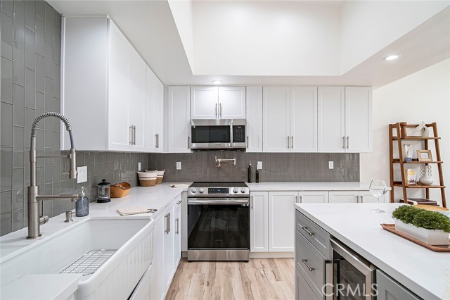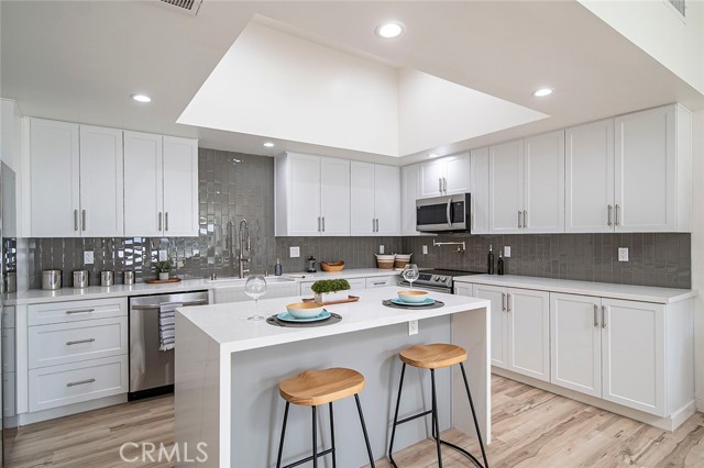 *ABSOLUTELY STUNNING! You will not believe that this unit is located in the premiere 55+ community of Leisure World, Seal Beach! The owner completely gutted the unit at the beginning of 2023 and had the entire place redone. Everything from floor to ceiling is new! The unit was expanded to its full capacity, and then, a private patio was installed that extends out even further, thus offering you a fantastic outdoor space perfect for an evening gathering, or a great spot to read a book and enjoy the Southern California sunshine! That is only the exterior! Inside the unit features two full-size bathrooms, two bedrooms (one is a master suite), a laundry closet w/a full-size washer/dryer, an open and bright living room, and a gourmet kitchen that is larger than most kitchens you will find in a single-family residence! The kitchen features quartz countertops, a full-size island with waterfall edges, lots of pantry and cabinet space, a wine refrigerator, a custom pot-filler over the electric range, a built-in microwave, a dishwasher, a full-size side-by-side refrigerator/freezer, and a large farm sink. All of the interior finishings were hand-picked by the interior designer, from Staged Within Reach, specifically for this unit, and are exceptional. The owner spared no expense in making this truly one of the best units in all of Leisure World! Oh, and this unit is located in Mutual 5, an outstanding Mutual, and it is located within walking distance of the pool, gym, golf course, medical center, pharmacy, and more! This is a rare find!
