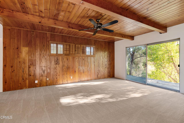 Perched on a 8,545 SF lot in the Studio City hills, this private 5-bed, 3-bath residence is filled with natural light and has sweeping tree-top views. With a layout perfect for entertaining, it's easy to imagine hosting holiday gatherings, dinner parties, and swanky soirees across this two-story 3,300 SF property. The unassuming entry opens up into the impressive great room with a gorgeous beamed ceiling, cozy stone fireplace, wall of windows, and spacious deck highlighting the incredible, peaceful view. The wet bar and adjacent kitchen create the perfect atmosphere for serving up drinks and appetizers. The kitchen has an attached dining area, tile counters, and accesses a separate laundry room. The main level also features a large guest bathroom, hallway storage, primary suite with double closets & ensuite bath, and two additional bedrooms, one of which would make a great home office. Travel down to the lower level to find a large family room with gorgeous wood floors, which, just like the living room above it, is the perfect place to entertain, with a fireplace, large wet bar, and deck that spans the length of the room. This hallway, lined with closets, leads to two additional bedrooms, a full bathroom, and a large storage space. There's also an attached 2-car garage and a convenient screened in gardening area to grow your own fresh herbs & veggies. Located in close proximity to Wilacre Park, Fryman Canyon hiking, and the happenings down on Ventura Blvd, this is a great place to call home!