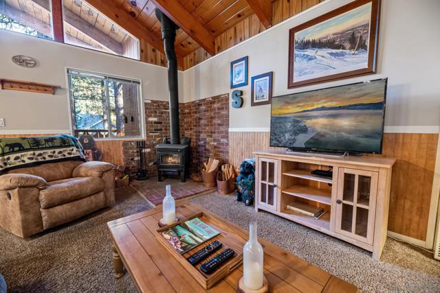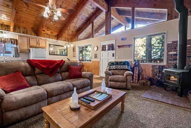 Nestled in the heart of a pristine mountain landscape, this 2-br, 1-ba cabin is the epitome of rustic charm and natural beauty. With its vaulted ceilings, this cozy retreat exudes an open and airy ambiance that perfectly complements the breathtaking mountain views. The cabin's warm and inviting interior is a haven for relaxation. The spacious living area features vaulted ceilings, adorned with exposed wooden beams that create a sense of spaciousness and rustic elegance. A wood burning stove takes center stage, providing a cozy focal point for chilly mountain nights. The open concept design seamlessly connects the living area to the well-equipped kitchen, allowing you to prepare hearty, homemade meals while enjoying the company of loved ones. You'll fall asleep to the soothing sounds of nature and wake up to the serene beauty of the landscape, perfect for unwinding after a day of mountain adventures. One of the most captivating features of your cabin is its proximity to the ski slopes and lake just minutes from your front door, you can easily access the powdery trails that beckon adventure seekers year-round. Whether you're an avid skier or simply appreciate the serene beauty of snow-covered landscapes, this location is a winter wonderland. Morning cups of coffee on the large covered deck are also a pleasure you can share with guests as well! HOME SOLD FULLY FURNISHED. CLOSE TODAY, SLEEP IN IT TONIGHT! (Includes approved plans to expand to a 2/2 w/laundry room)