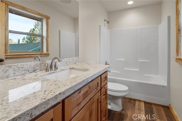 The surrounding oak and pine trees give this beautiful new construction home a serene and peaceful mountain ambiance. With 3 bedrooms and 2 full baths, there is plenty of space for comfortable living. The spacious bathrooms are equipped with granite countertops and convenient Bluetooth exhaust fans.The open kitchen boasts stainless steel appliances, custom cabinets, and granite countertops, creating a stylish and functional space for cooking and entertaining. The home's wood accents throughout add a touch of warmth and character. Furthermore, this home offers a 2 car attached garage, providing ample parking and storage space. Overall, this new construction home seamlessly combines modern amenities with a beautiful mountain aesthetic.