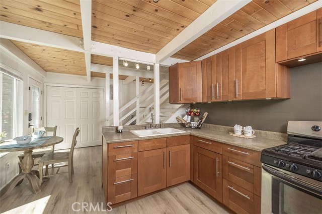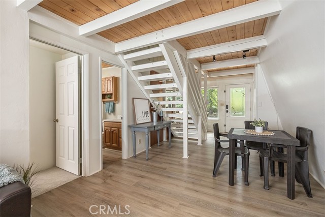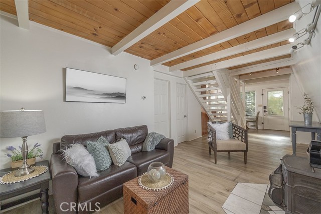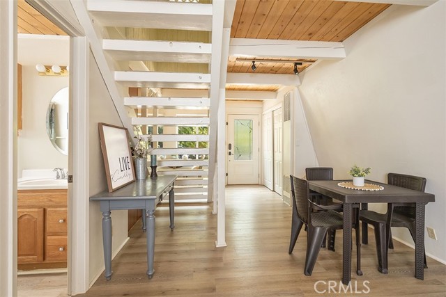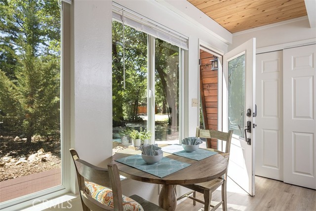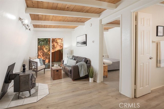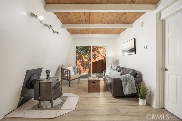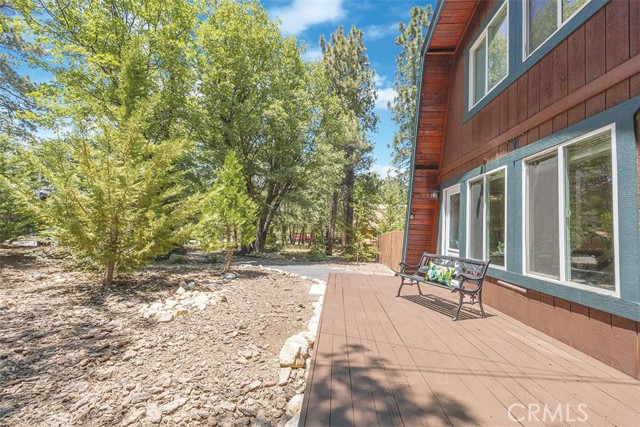 Your mountain dream awaits! Experience this special home nestled on an extraordinary lot delivering a majestic park-like treed setting that creates a wonderful sense of privacy. There is great space for a boat, RV or your favorite off-road vehicle with the possibility to expand or add a garage if desired. Boasting a great location with a nearby park, plus national forest access for hiking or adventure just up the road! Beautiful natural light graces this home with updated dual-pane windows inviting the beauty of the outdoors...inside. There is an energy efficient freestanding wood stove, desirable wood-style vinyl plank floors and new carpet. The kitchen has updated cherry-stained cabinets with a nice openess to the living room. Enjoy one of this homes lovely decks offering great places to unwind and restore. There are 3 bedrooms, each with good- sized closets and 1.5 bathrooms. The home sits on a 7500 sq ft lot, with the rear portion fenced including a wonderful double gate & 2 large storage sheds. Enjoy the fantastic indoor & outdoor living space with freshly stained front & rear decks overlooking the sights and sounds of nature. Convenient to Hwy 38, Big Bear's only high school, our beloved national forest and The Sports Ranch park with a dog park, playground & pickle ball. Whether you are looking for a peaceful retreat, short term vacation rental or a full-time home in a magical setting, 463 Santa Barbara provides a special opportunity.