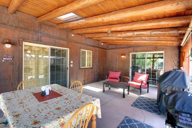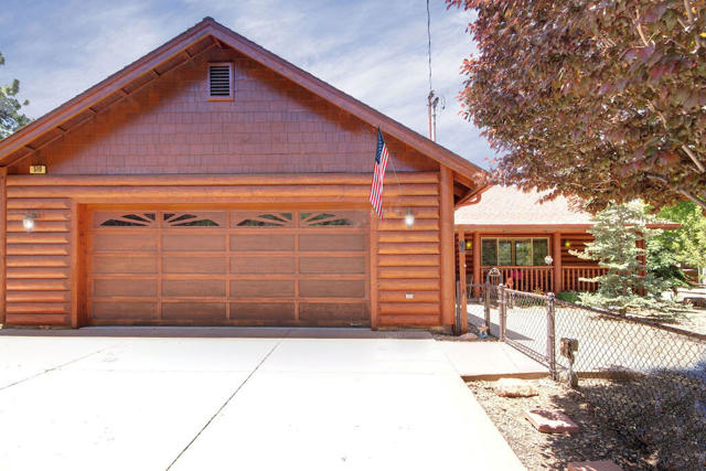 This well-maintained home checks all the boxes. Great single level living floor plan. Mountain-style log-sided home with 2 car garage on a large 7500 sq ft corner lot. The yard is fenced and landscaped. High-end wooden shutters. You'll love the modern kitchen with Knotty Alder cabinets, Granite countertops, a walk-in pantry, island with bar seating. Covered front porch and huge rear outdoor covered patio/entertainment area. RV or boat parking is accessed through the rear gate. Vaulted tongue and groove ceilings in the great room and rock fireplace. Large 576 sq ft garage, separate laundry room. Primary bedroom suite with cedar-lined walk-in closet. Air conditioning and central forced natural gas heat. Lots of storage including 2 attic storage areas with pull-down ladders and a shed in the backyard.