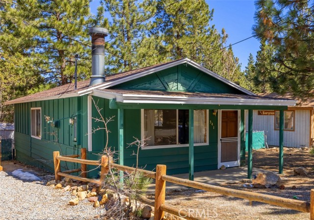 This sweet, Mountainaire style cabin has been given a face-lift and is ready for it's new owner. Nice open floor plan has large living room with corner rock fireplace, cedar T&G ceilings and pecky-cedar wood walls, breakfast bar with live edge slab countertop in kitchen and 2 spacious bedrooms. Interior has been updated with new carpet, new plumbing fixtures and a new washer/dryer closet. Level lot is partially fenced and provides plenty of storage with 2 sheds in the back yard. This easy access location is only a few blocks away from National Forest and just steps to a market and restaurant. Could be a great full-time, vacation or investment home.