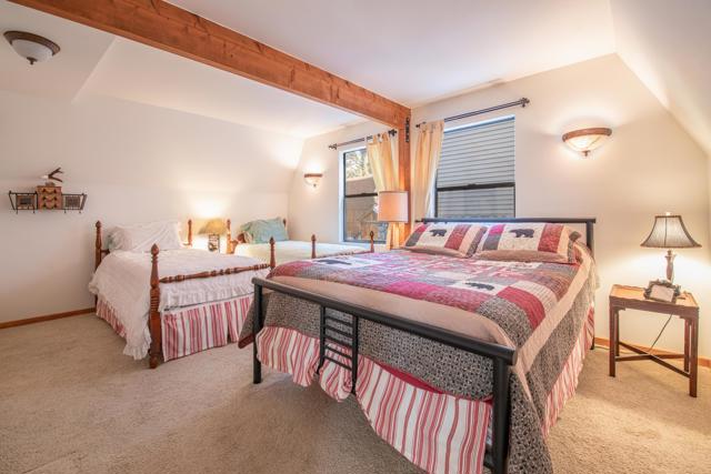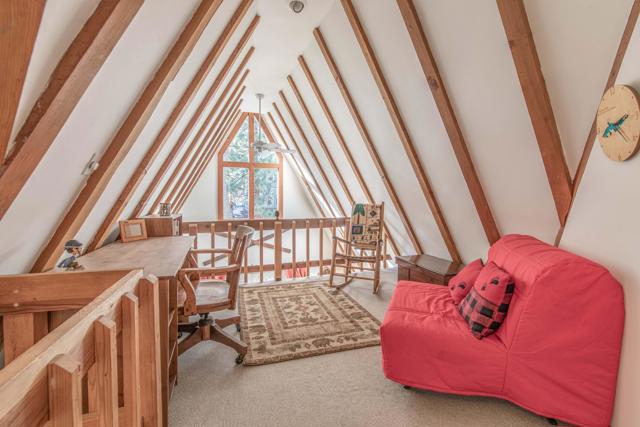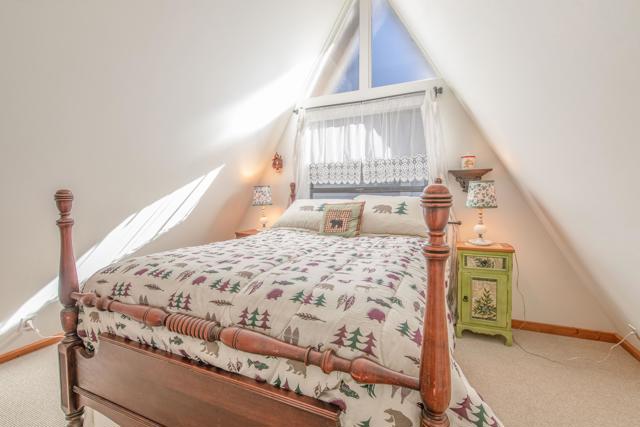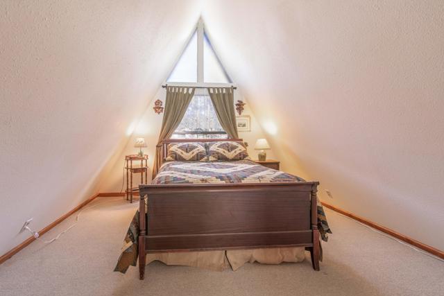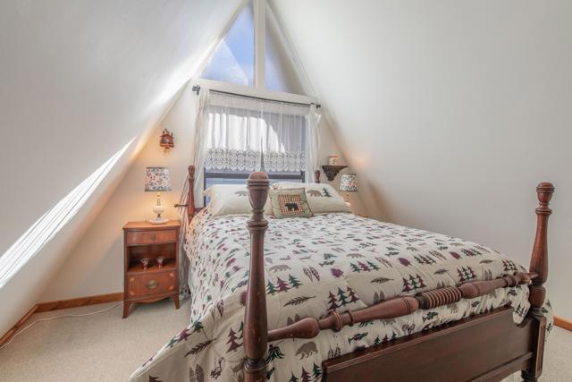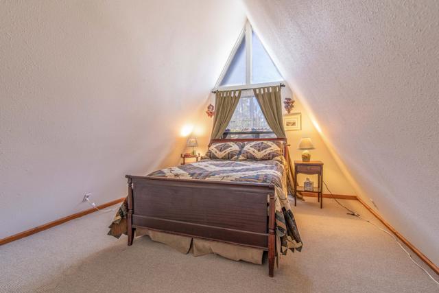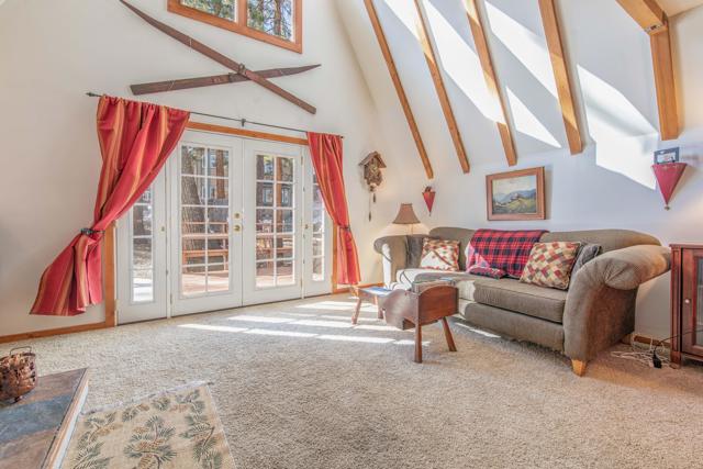 Quintessential 'Cabin in the Woods' this tastefully appointed A-Frame will bring a smile ear to ear. Soaring ceilings, fixed-glass windows and French doors bring in loads of natural light. A fantastic combination of modern amenities with rustic design. Spacious bedroom with tranquil living area, updated kitchen and dining downstairs. With two additional bedrooms plus scenic loft up. Great easy-access parking on a beautifully wooded lot makes this the alpine get-a-way you have been looking for...