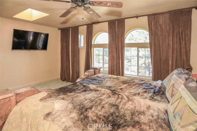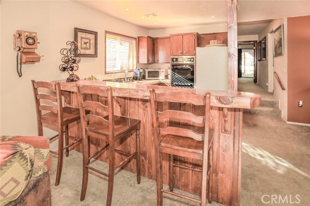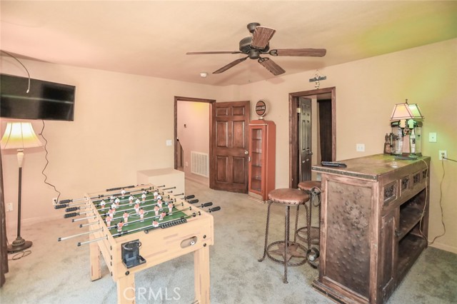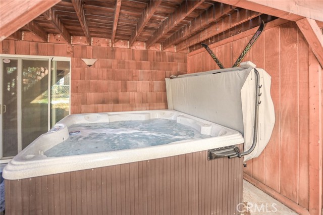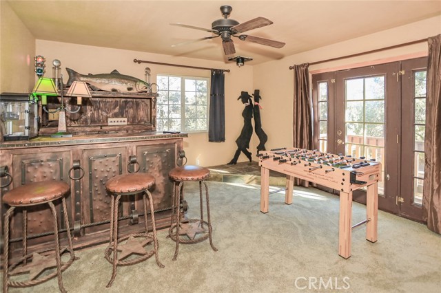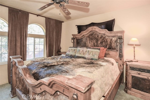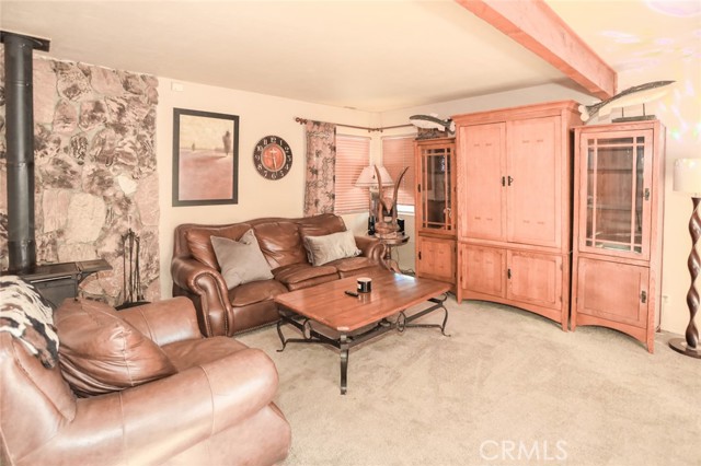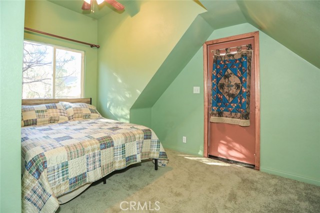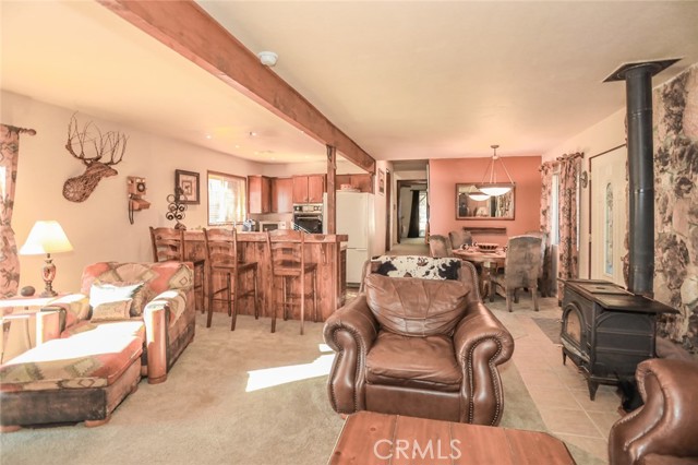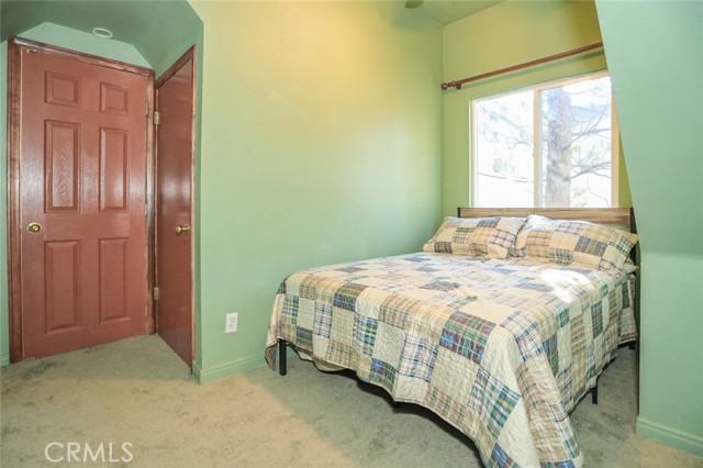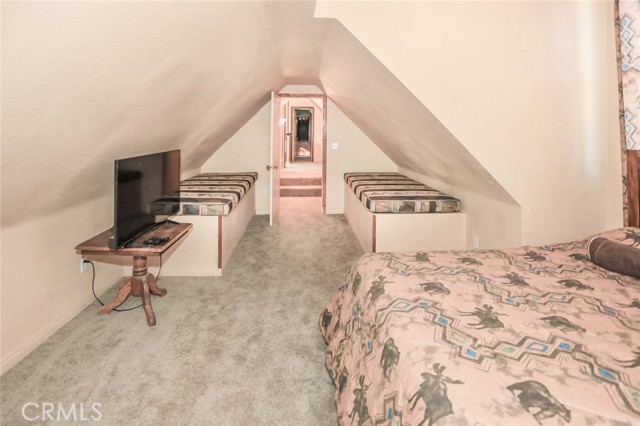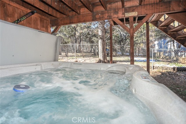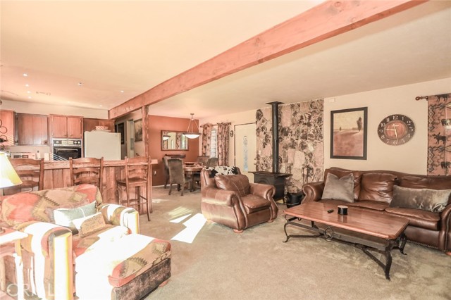 Spacious log sided home in Sugarloaf with many elements suited for entertaining if you wish, inside and out. This cabin has all the amenities for your comfort. Bottom floor offers large open floor plan including kitchen, dining area and living room. Also downstairs is one full bathroom, storage room/laundry and one bedroom with a huge closet which leads to porch and Jacuzzi outside. Beamed ceilings, recessed lighting, breakfast bar, native rock wall feature and free standing stove to warm up the place are just a few more details to note. Carpet and paint are in good shape. You'll appreciate lots of windows and natural lighting. Cabinets and appliances are also in good shape. Metal spiral staircase takes you to large additional square footage upstairs, perfect for large family gatherings and STR possibilities. Another 2 large bedrooms and their closets, 2 balconies, game/bar/family room (counted as 4th bedroom) and full bathroom compete the 2nd story. This property is unique for the area and feels mountain- cozy. Wrap -around decking with abundant trees is perfect for star gazing or throwing snow balls. The large driveway can hold 3 cars or boat/RV, in addition to the attached 2 car garage. There is also street parking. Sugarloaf is located just a few miles from Big Bear Lake. This property is easily accessible and roads are a piece of cake to drive in winter. Just off the highway to 38 or 18, this cabin will check off all your "must haves".