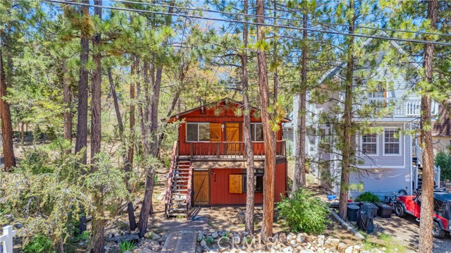 Back on the market no fault of seller. Cabin located in a charming neighborhood tucked amongst tall sprawling pine trees located down the street from the National Forest for all those hiking enthusiasts. The property is only a short drive to Ski Resorts, Downtown Big Bear and all the amenities Big Bear has to offer. This home has lots of potential with the gorgeous vaulted wood beamed ceilings & the cozy brick fireplaces. Great opportunity to have a Mountain Getaway, Second home or Investment Property.