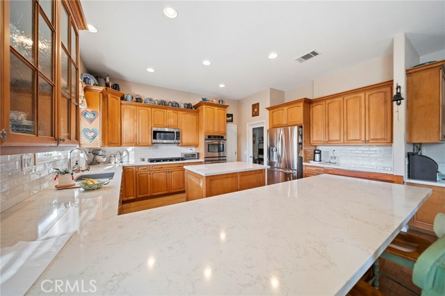 Welcome to this beautiful Meadowview single story home, with a total 5-Car Garage, pool, a casita, and RV Parking! This home quite literally has it all. As soon as you pull into the driveway, you will appreciate the well maintained front landscape. You have an attached 3 car garage to the main home, and to the left you have the long RV parking with a detached 2 car garage. Entering the home, you will love the high ceilings, upgraded flooring and open concept layout. To the right you will find your upgraded kitchen with new quartz countertops that opens up to the living room, perfect for family gatherings. Moving down the hall you have a half bath and a huge dining room. As you continue, you will see the huge master suite with a fully renovated master bathroom. You will also find the three guest bedrooms and the shared upgraded guest bathroom. Finally, when you enter the backyard you will appreciate how much space you have with a ton of well kept grass, a huge pool and a casita with its own full bathroom.