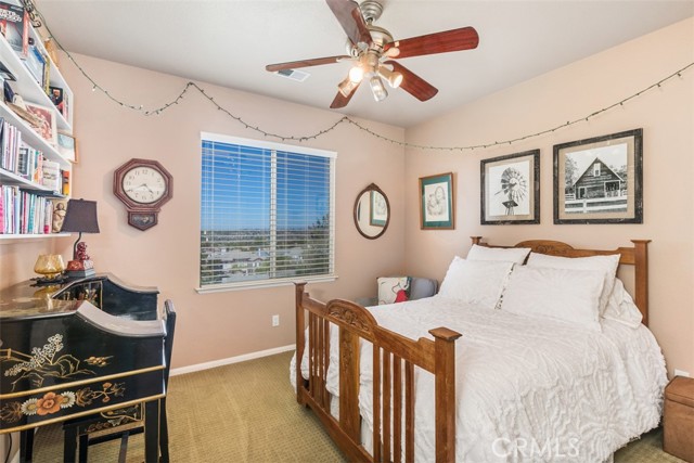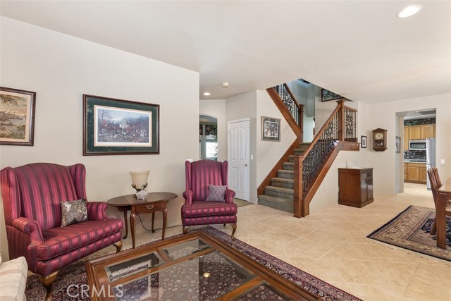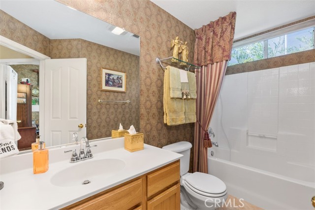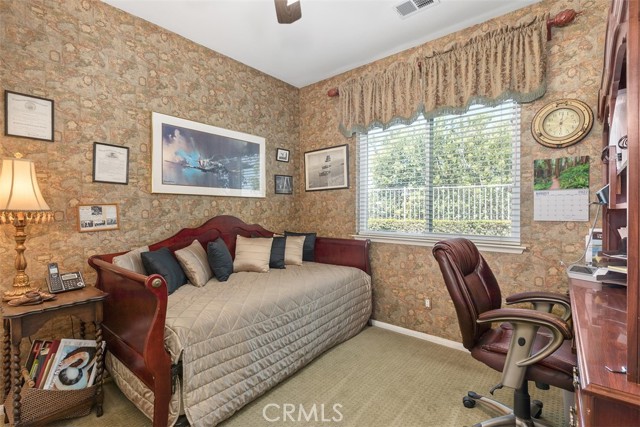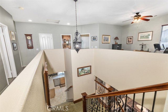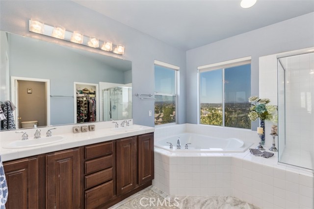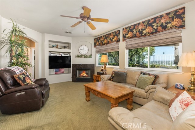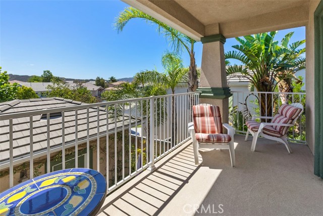 PRICED TO SELL! Stately 5 bedroom, 3 bath home located on a view lot in the prestigious gated community of Vintage. Elegant curb appeal with pavers on driveway leads to courtyard sitting area at the front entry. Enjoy this tranquil spot listening to the wall fountain and surrounded by greenery. A separate casita, currently a work room, adds unique opportunity for the next homeowner to use as they wish. The lovely interior features a formal living and dining room area and unique double stairway with beautiful iron & wood railing- and that's just for starters! The kitchen opens to a separate eat-in area and family room. All of which you can enjoy the view from. The kitchen has upgraded counter tops, ample cabinets for storage, island & walk-in pantry. The family room has a gas fireplace and 6 surround sound ceiling speakers. There is a bedroom and full bath downstairs. Tile flooring, textured pattern carpet, plantation shutters, ceiling fans, crystal dining chandelier and upgraded pendant in the stairwell are just some of the interior appointments. The second floor features a private master suite with French doors to deck from which you could see hot air balloons and snow covered mountains! There's also an additional built-in wall cabinet for storage and his & her closets. The master bath has a corner soaking tub, separate shower enclosure and dual sink vanity. There are three additional spacious bedrooms and a full bath with dual sinks. Also upstairs is a cozy loft area for study or extra family space. The backyard features a lovely pavered patio, sitting wall, lawn area and planter with shrubs and trees. Convenient location to all Temecula has to offer, shopping, award-winning schools, parks and wine country are here!