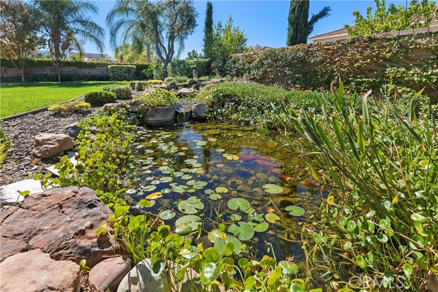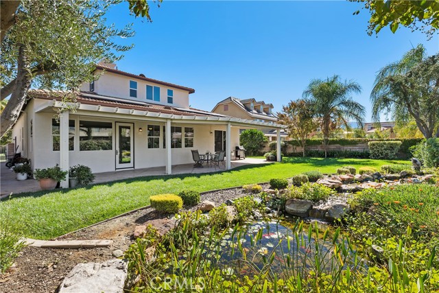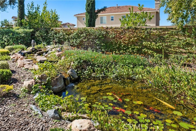 Welcome to your dream home in South Temecula! Nestled on a spacious 9,148 SqFt lot in a tranquil cul-de-sac, this move-in ready gem is an oasis of luxury living. Boasting the coveted school boundaries of Great Oak High School, this residence offers not only an ideal location but also an array of stunning features. Step into the grandeur of a true architectural masterpiece, where a circular formal entry sets the tone for elegance. With 10-foot ceilings and beautiful archways throughout, every corner of this home exudes sophistication. The kitchen is a chef's delight, equipped with stainless steel appliances, double ovens, a large breakfast bar, and ample cabinetry. Indulge in the seamless flow of the open kitchen design into the eat-in kitchen and great room, perfect for modern living. The stacked stone fireplace with a raised hearth and the expertly crafted built-in media niche are sure to captivate your guests. Offering the best of both worlds, this home combines the convenience of a single-story lifestyle with the spaciousness of a two-story design. Three generously sized bedrooms, each with ensuite bathrooms, provide versatility and comfort. The primary bedroom, situated at the back of the home, offers direct access to the backyard and a spa-like ensuite, while an additional first-floor bedroom and an oversized third bedroom upstairs ensure privacy and flexibility. Step outside to your own private sanctuary, complete with a tranquil Koi pond and waterfall, creating a multi-sensory outdoor experience. Relax under the lighted Alumawood patio cover that spans the length of the home, perfect for entertaining or simply unwinding after a long day. With recent updates including paint inside and out, a newer water heater, wall oven, built-in microwave, AC, and furnace, this home is truly turnkey. Plus, enjoy the added benefit of a solar power purchase agreement, low taxes, and low HOA, making this property an incredible value. Don't miss your chance to call this stunning residence your own – schedule a showing today and prepare to fall in love! Please note: 1st Floor Office and 2nd Floor Bedroom have been virtually staged.