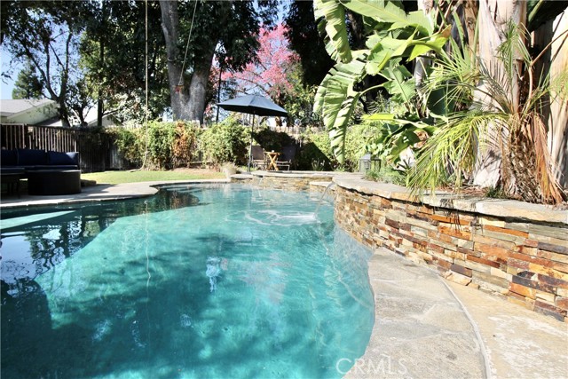 Beautiful Single Family Pool House Home is now available for lease! This spacious 4 bedroom, 4 bath, open-concept home features a fully updated kitchen, 3 main level bedrooms, one upstairs bedroom, and a custom loft area. The master suite opens up to the backyard retreat with custom French doors and offers a spacious bathroom with dual vanity, a separate oversized shower, and a Claw-foot tub. Downstairs offers custom coffered ceilings, a formal living room, and a large dining room space. The newly updated kitchen is equipped with updated appliances, custom cabinetry, endless amounts of storage space, a large island, and a breakfast nook. Other amenities include new oversized energy-efficient windows, beautiful wood flooring throughout the entire main level, and a custom loft space for movie nights or to be used as an office area. As a huge bonus, enjoy the large, private, spacious wrap-around backyard with a gated pool, large grass area, spa, and privacy-style landscaping. The backyard also offers a detached 2-car garage, a gated driveway space, and loads of storage space. Newer pool equipment including energy-efficient heater and salt-water system. This wonderful home is conveniently located near restaurants, shopping, theaters, parks, and easy freeway access.