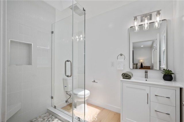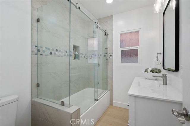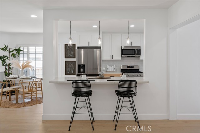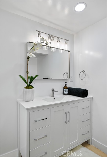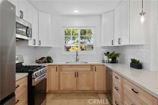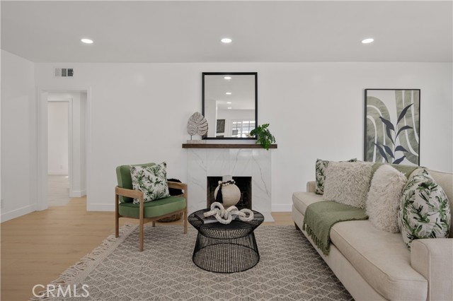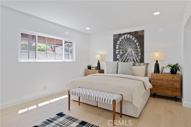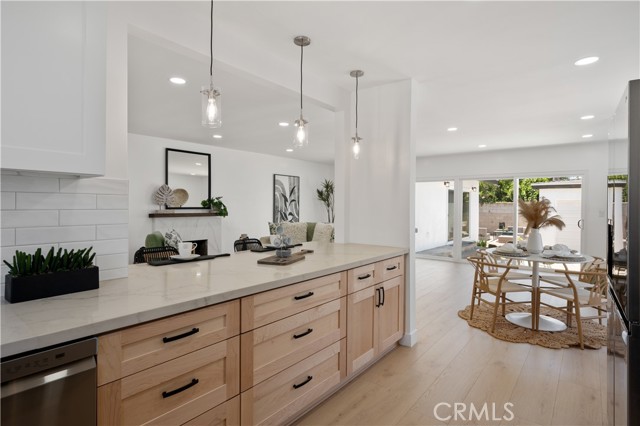 Discover this beautifully remodeled gem in the heart of Central Torrance, just moments from Del Amo Mall and Old Torrance. Every detail has been thoughtfully upgraded, from fresh paint, new doors, new roof,, new tankless water heater, recessed lighting and light fixtures, to the new kitchen and baths. The brand-new kitchen impresses with quartz countertops, elegant wood cabinets, a stylish tiled backsplash, and updated plumbing fixtures. The open floor plan features oak-style floors and high ceilings, with a striking quartz-clad fireplace and wood mantle in the living area. Sliding glass doors offer seamless access to the private backyard, perfect for dining al fresco. The primary suite boasts a spacious walk-in closet and a new permitted ensuite bathroom. A bonus: one of the guest bedrooms also includes an ensuite bathroom, providing added comfort and privacy. All bathrooms are renovated, and feature modern vanities and newly tiled showers, creating a sleek, contemporary feel. The front yard is lush with new sod and fresh plants, adding to the home's curb appeal. Located in the sought-after Torrance Unified School District and just minutes from the beach, this home perfectly balances luxury and convenience.