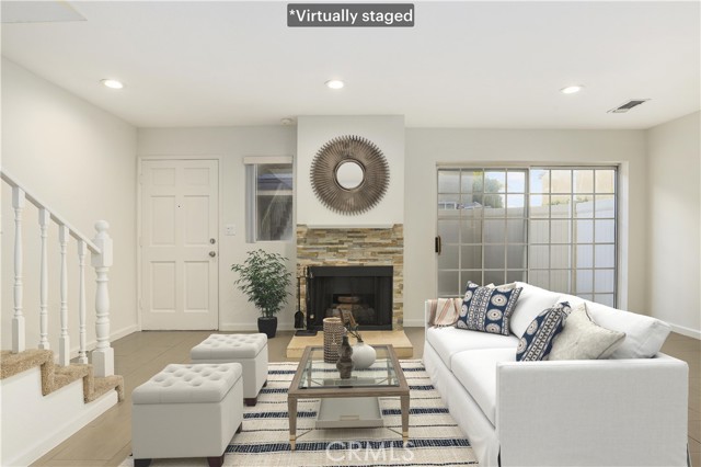 Welcome to Torrance Park South....a secure/gated community which gleams with pride of ownership! This super clean well appointed complex surrounds a gleaming pool and spa along with a kids play area. The Town Home itself is an END unit with a flood of natural light flowing inside this Traditional floor plan unit with all living space downstairs and all 3 bedrooms on the top level. The exhibition kitchen has been tastefully remodeled with granite counter tops, Stainless Steel appliances and freshly painted cabinets. Newer ceramic tile floors downstairs with a powder room and attached 2 car garage. The living room is adorned by a cozy mosaic stone fireplace. Don't miss the private patio off of the living space perfectly suited for outdoor living and grilling. Air Conditioning has been recently added. Upstairs you will find all 3 bedrooms, including your Primary Suite with private balcony and double entry Walk In Closet with attached bathroom w/double sinks. Recently fully painted interior and great quiet community to get in for a great price....get in prior to the Holidays!