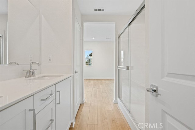 Impressive 3-Story Brand New Construction & Energy Efficient Home! This home features a cozy front porch, 2-car rear facing garage, a Jr Suite on the lower level, and plenty of storage options! The first flight of stairs leads you to a gracious great room with an open concept view to the large kitchen that boasts a gorgeous stone center island, walk-in pantry, Whirlpool stainless steel appliances, soft closing drawers, stacked upper cabinets, under cabinet lighting, and modern finishes from the hardware to the countertops & backsplash. The 3rd floor exudes comfort & relaxation, with a convenient upper level laundry area, 3 bedrooms, and 2 full bathrooms. The luxurious primary suite is the perfect retreat, showcasing a spacious frameless shower, extensive dual vanity, and a full wall organized closet system. Additional smart features you’ll enjoy include optional solar panels, wi-fi thermostat; oven, tankless hot water heater, and electric vehicle charging conduit. This gated community is nestled in close proximity to employment opportunities, major freeways, and public amenities like parks, shopping & dining. Don’t wait – close in May!