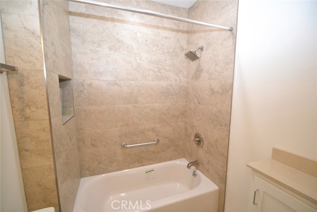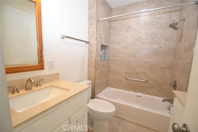 Spacious upgraded 2-bedroom home featuring a galley kitchen with quartz counters & stainless-steel sink. Two brand new remodeled bathrooms, wood laminate flooring throughout. The master bath has a private bath area and a walk-in closet with closet organizers. Other features include drought-resistant landscaping, a deck off the back door, a separate laundry area and two 1-car garages with additional parking. Water included in lease; Tenant pays electric, gas & trash. See to appreciate!