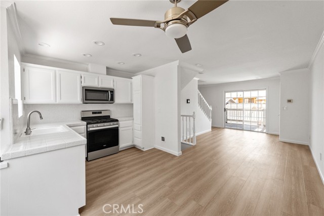 This beautiful townhome is conveniently located just steps away from the heart of Old Downtown Torrance, offering easy access to all the amenities and attractions of the area. The townhome features two bedrooms with high ceilings, with one of the bedrooms boasting a spacious patio, providing a relaxing space to unwind. The bathroom in this home is bright and in excellent condition, reflecting its like-new status. Additionally, there is a bonus room that can serve as a home office, a workout or yoga room, or any other space that suits your needs. The townhome has been recently painted and fitted with new vinyl/stone composite flooring, ensuring a fresh and move-in ready atmosphere. The one-car garage offers ample storage space, and it also includes washer/dryer hookups for added convenience. A large private patio off the living room extends the living space outdoors, providing an ideal area for outdoor relaxation and entertainment. The kitchen is equipped with all new stainless steel appliances, adding a touch of modernity to the home. Beautiful fixtures, including a stainless fan in the dining area, enhance the overall aesthetic appeal. The location of this townhome is excellent, offering proximity to the charming attractions of Old Torrance. Enjoy recreational activities at the El Prado greenbelt, such as playing frisbee or football, or simply relax and have a picnic under the beautiful old shade trees. Wilson Park is within walking distance, where you can explore one of Los Angeles' largest Farmer's Markets on Tuesday or Saturday mornings. In summary, this townhome in Old Downtown Torrance is in pristine condition and offers a desirable combination of comfort and convenience. With its updated features, private patio, and proximity to the vibrant neighborhood, it presents an opportunity to enjoy the best of the area's amenities and attractions.