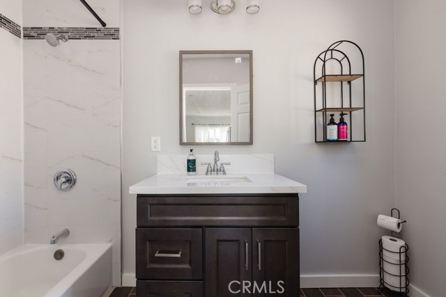 Bathroom Information | Shower in Tub, Corian Counters, Soaking Tub, Vanity area |
