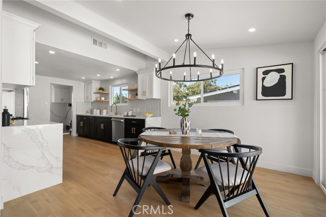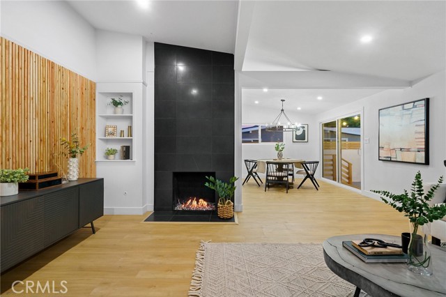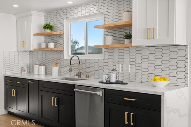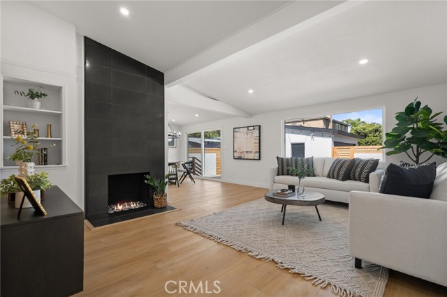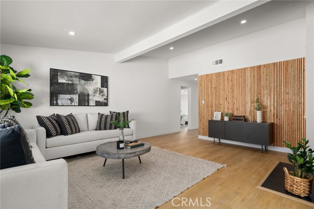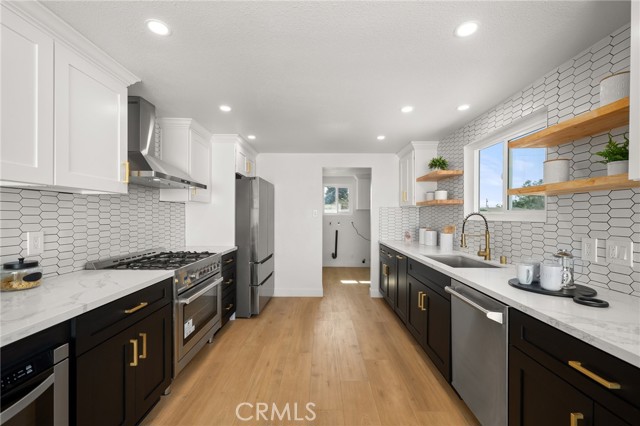 Welcome to your New Home! Completely remodeled, this stunning property welcomes you to a corner lot in an incredible location. Meticulous attention is evident throughout, from the new roof to the white wash plank oak flooring and baseboards. The fireplace is adorned with custom tiles stretching to the ceiling, while a hand-carved wood wall element adds uniqueness. New lighting bathes the space, and the designer kitchen shines with custom shelves, a luxury Zline cooktop, custom hood, microwave drawer, and designer quartz countertops with a captivating backsplash. A spacious laundry room boasts cabinets, and the bathrooms are fully remodeled, showcasing floating vanities, custom tile floors, and mirrors with interior lighting. Every fixture is new, from interior and exterior doors to the paint inside and out. The master bedroom includes a generous closet, and three additional bedrooms feature new mirrored closet doors. The remodeled backyard offers stamped concrete, squares, and gravel, while the garage gleams with fresh paint from floor to ceiling, crowned by a new door with an opener. Every inch of this property reflects thoughtful upgrades, transforming this home into a beautifully enhanced haven.
