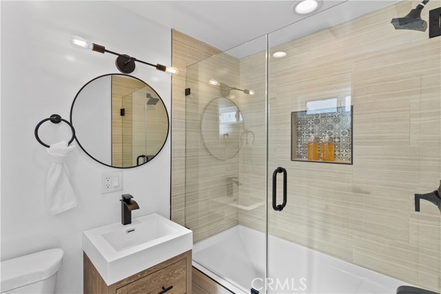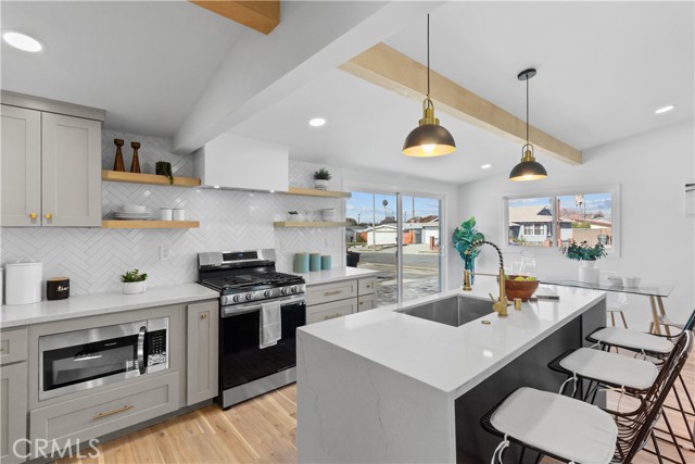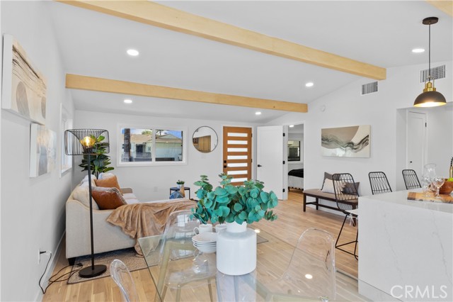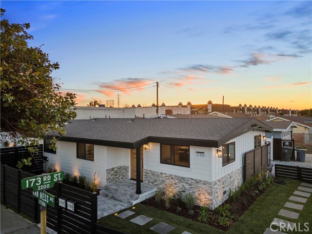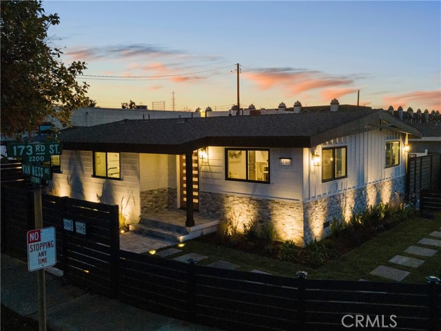 Extraordinarily STUNNING REMODEL corner lot in desirable North Torrance neighborhood with ADU. The Front house is a 1,166 Sqft, 3 Bed 3 Bath plus a 1 Bed 1 Bath, 488 Sqft ADU with shared pool patio. A gated cobblestone front porch design welcomes you to a modern farm house style exterior, lined with serene meadow brush inspired landscaping and automated dusk to dawn path lighting. The large open layout family rooms flows into the dining area and kitchen through the interplay of abundant natural light across the beautiful acacia hardwood floor and ceiling beam accents. The kitchen features a caviar black island over waterfall quartz countertops , beach sand shaker cabinets, a spacious pantry, elegant herringbone white tile backsplash, finished in stainless steel appliances, stylish bronze fixtures and custom builtins. Fully remodeled, Inside & Out, with a multitude of upgrades ~ New Copper Plumbing, New Roof, New Central HVAC, New Paint Interior + Exterior, New Electric outlets with ethernet prewired throughout, New Windows, New Tankless Water Heater, New Pool Equipment & New LED Recessed Lighting. Other features include guest master en suite, washer/ dryer closet, high efficiency insulation, full guest bathroom, master and guest bedroom include glass slider access to the backyard pool patio with built in water features. Large DETACHED cabana style ADU with HVAC, pristine kitchen, living and dining areas. Separate washer/dryer to supplement a 1 full bedroom and modern full bath finished immaculately in Italian marble. ADU has income potential, as separately metered and addressed. Both properties share long cobblestone paver driveway which is gated with a New EV Charging Station. Wonderful location just minutes from freeways, accredited schools, local shopping and parks.