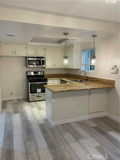 Newly renovated townhome in West Torrance! Clean, modern coastal design. Enter into the cozy living room with a newly updated fireplace. A generous kitchen with upgraded stainless-steel appliances, granite countertops, and modern cabinetry. The kitchen and dining room opens up to your lovely outdoor patio area. Lower level guest half bath has been updated. Primary bedroom with dual walk-in closets, an en-suite master bath with double sink and updated shower. Second bedroom has an adjacent beautifully update bathroom. Great set up for roommates. Vinyl plank flooring, recessed lighting, and a gas fireplace. Interior laundry. Front and back patios. Two car subterranean parking with storage.
