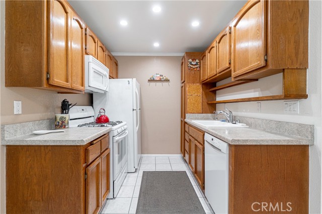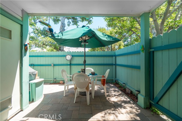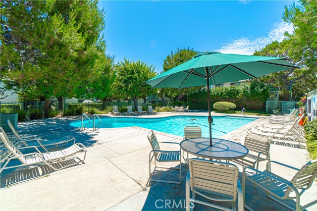 Embrace resort-style living in this well-kept 1-bedroom, 1-bathroom condo nestled within the gated Ponderosa West community. This move-in ready corner unit surrounded by large trees and a babbling brook flowing right by the updated patio, has seen many upgrades over the years, from the kitchen, which comes equipped with a dishwasher, stove, refrigerator, to flooring, and bath which has a step-in shower. The windows and patio door have been replaced with dual pane glass. The generously sized bedroom features a walk-in closet for ample storage with a built-in wall safe, while laundry hookups within the unit, along with included stackable washer and dryer, ensure convenience and comfort. Step outside onto your private enclosed patio, complete with new paver floor and additional storage space, perfect for enjoying morning coffee or evening relaxation. Located just moments from your doorstep is an assigned covered carport space, offering easy access to your vehicle. Indulge in the community's array of amenities including swimming pools, spas, and meticulously landscaped grounds with mature foliage and soothing streams, evoking a tranquil, luxurious resort ambiance. Centrally positioned, this condo affords quick access to premier shopping, dining, and entertainment destinations, striking a harmonious balance between convenience and serenity. Don't miss the chance to experience upscale living at its finest in Ponderosa West—schedule a viewing today and envision yourself calling this charming condo your new home.