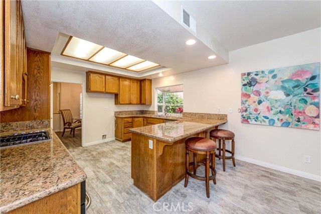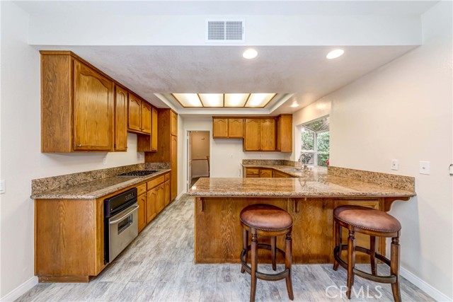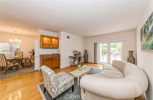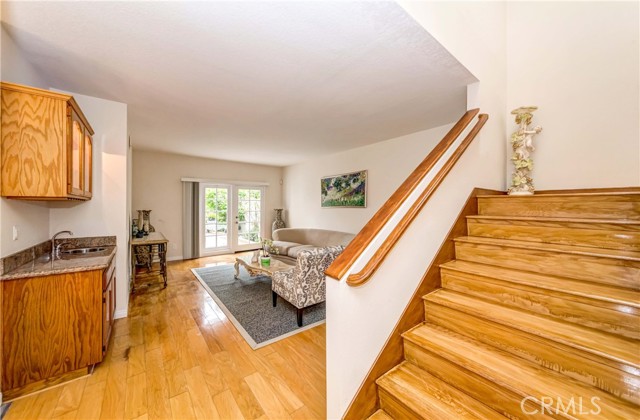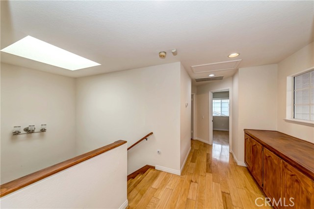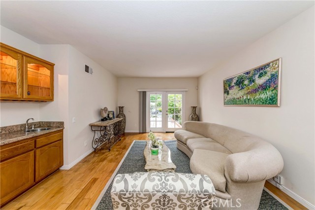 Detached freestanding 2 story house in gated community "SOUTH BAYPORT". Bright and open floor plan. Wood floors throughout the house. Updated kitchen with granite counter tops, gas range, appliances. Recess lighting and sky light on the 2nd floor. Formal dining room with French doors that open to the backyard. There is a wet bar. Formal dining room. Family room has a fireplace. Large master suite with room size of retreat that could be used as an office or rest area. Master bedroom has a walk in closet. Air conditioning ready. Master bathroom with sky lights, double sink, separate shower and bath tub. All bathroom has tile floors. Private back yard is beautifully landscaped. Oversized 2 car garage with deep cabinets. Extra storage space under the stair has wood floor. South Bayport complex offers pool, park like play area and club house. Close to Wilson Park, HanNam Market, schools, and banks. Easy access to the freeway and few miles to the beach. Public recording shows 4 bedrooms but actually 3 bedrooms. Owner pays Gas and Electricity. Water and basic cable is covered by the HOA.