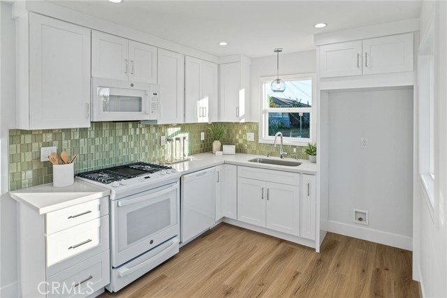 Take a look at this! Completely Renovated Inside-Under-and Outside! This cozy home features 525 Sq Ft of 2 Bedrooms 1 Bath Living and then an Additional 271 Sq Ft of Hybrid Options. New Roof, New Dual Glazed Low E Windows, New Electrical System throughout and a New 200 AMP Service Panel. New Energy Efficient Heating and Air Conditioning (Mini split system), New Tankless Gas Water Heater, All New Copper Plex Water Lines, All New ABS Waste Lines, New Washer and Dryer Hookups. New Large Insulated Sectional Garage Door, All New Paint to Exterior and Interior. All New Insulation in Walls and Ceiling of the home along with New Insulation in Garage Walls and Garage Ceiling. New EXTRA Wide driveway, New Fences, All New Drought Resistant Landscaping and New Flagstone Patio Area. New Kitchen with New Quartz Countertop, New Shaker Cabinets and Specialty Custom Drawer Features, New Designer Glass Tile Backsplash, New Sink with New Chrome Wand-Pull-Out Faucet, New Built in Microwave and Dishwasher and New Stove/Oven. New Luxury Laminating Flooring Throughout House, New Custom Tile Flooring in Bathroom and New Custom Tile Flooring in Hybrid=Garage/Man Cave/Rumpus Room/Office/Utility/Studio/Retreat/Game Room/Workshop. New Front Porch with Sleek, Modern, Elegant Iron Railing. New Entry Doors; Front and Back. All New Interior Doors. New Moldings, New Window Covers, New Recessed Lighting. This Cozy Home just got the Ultimate-Super Duper-VIP-Upgrade!