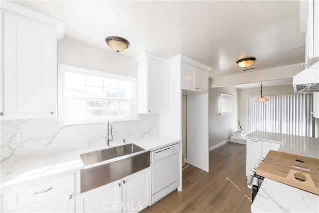 Beautifully done remodeled 2018, kitchen installing all brand newer appliances, especially an eye-opener at the enlarging backsplash area between counter-top and cabinets. 2 baths also have brand newer sinks, shower enclosure, all new doubled panned windows, flooring, painting, etc. Besides, there is a cozy fireplace for winter times. All block wall surrounding three sides of the property makes it extremely private. Torrance School - Anza, Jefferson, and West High (check with the school regarding vacancies prior to signing the lease). the newer auto-garage door was installed.